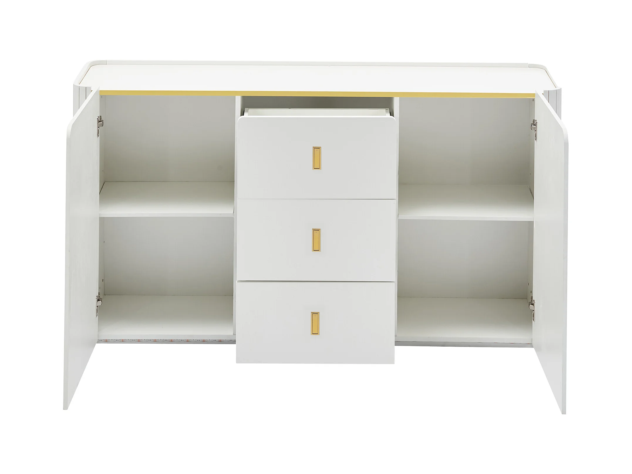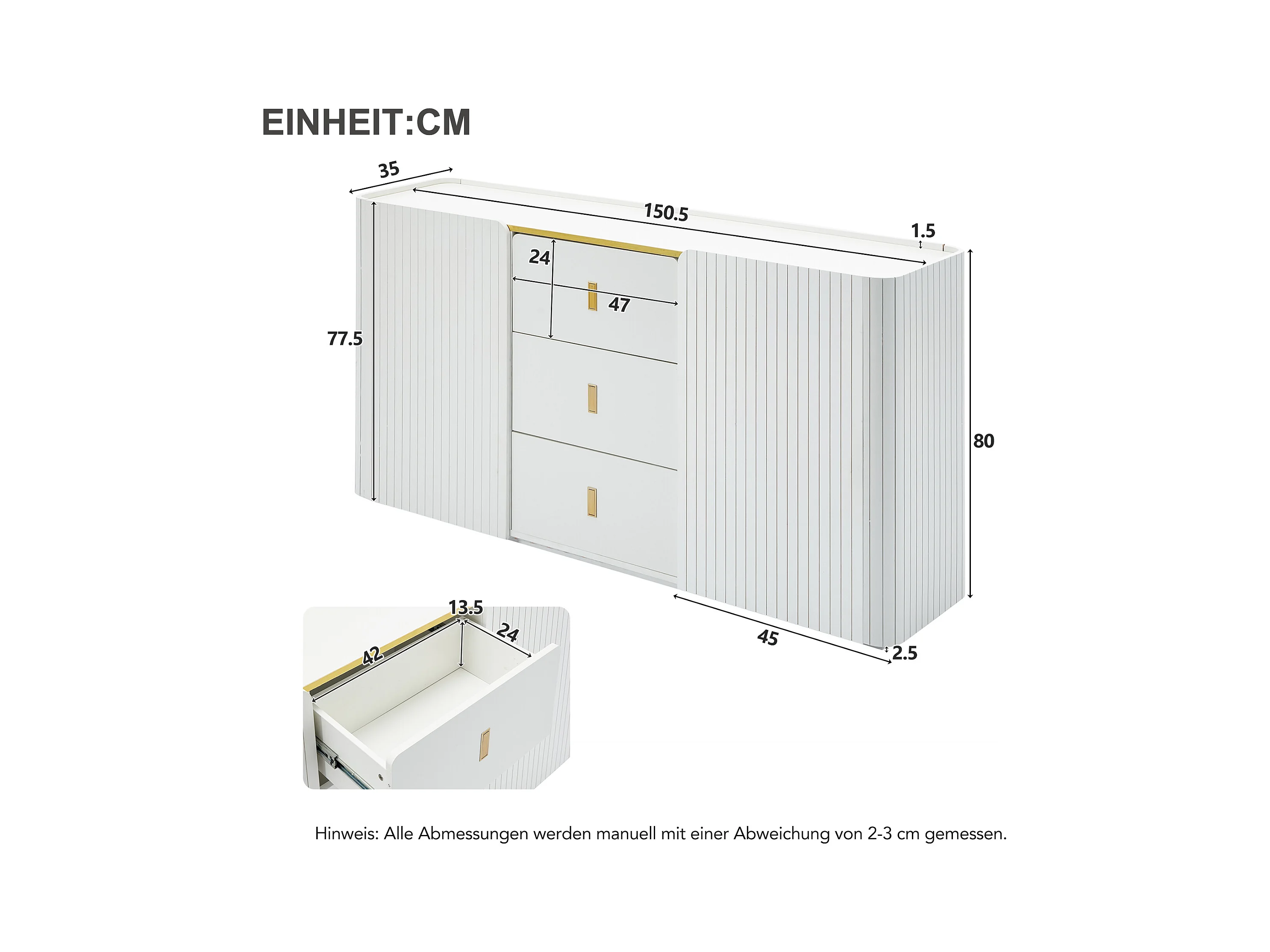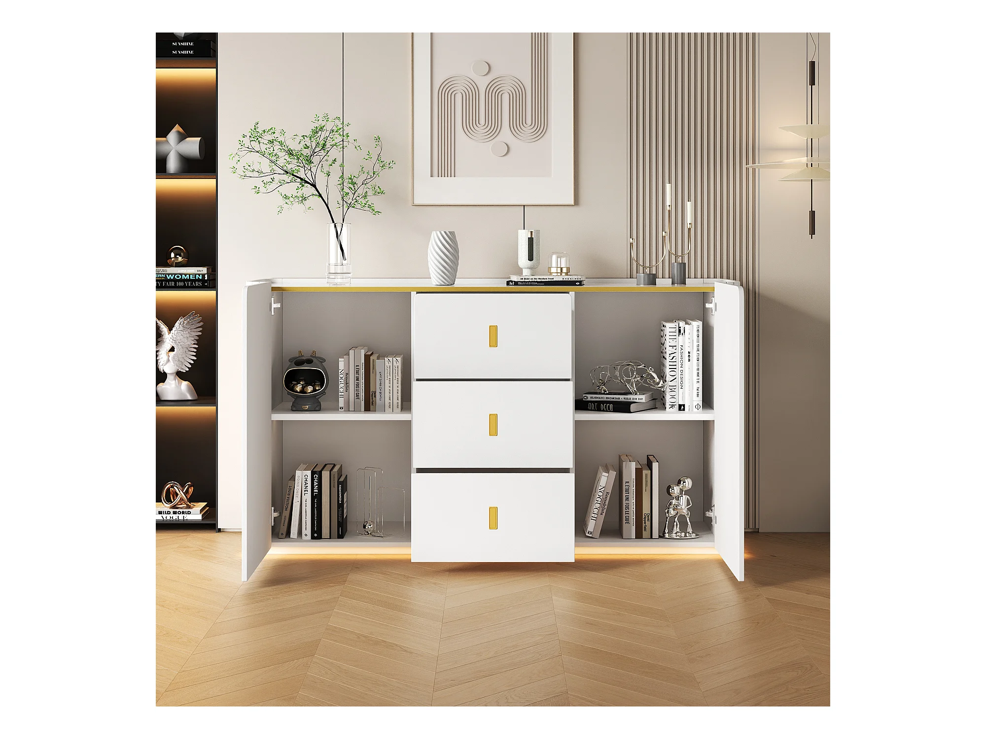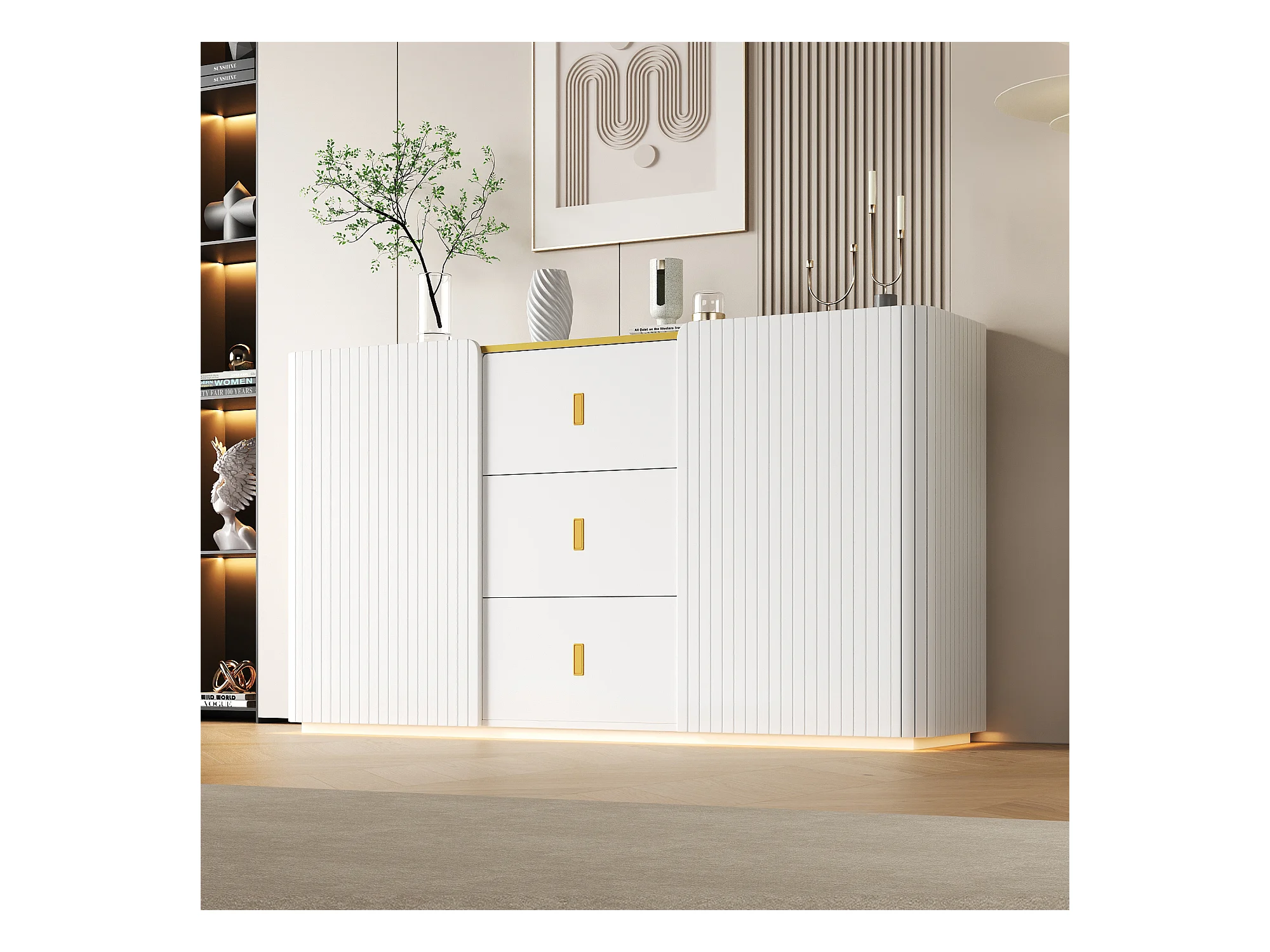 Buffet 150.5x35x80 cm LED avec 2 portes 3 tiroirs - meuble de rangement - bois - blanc