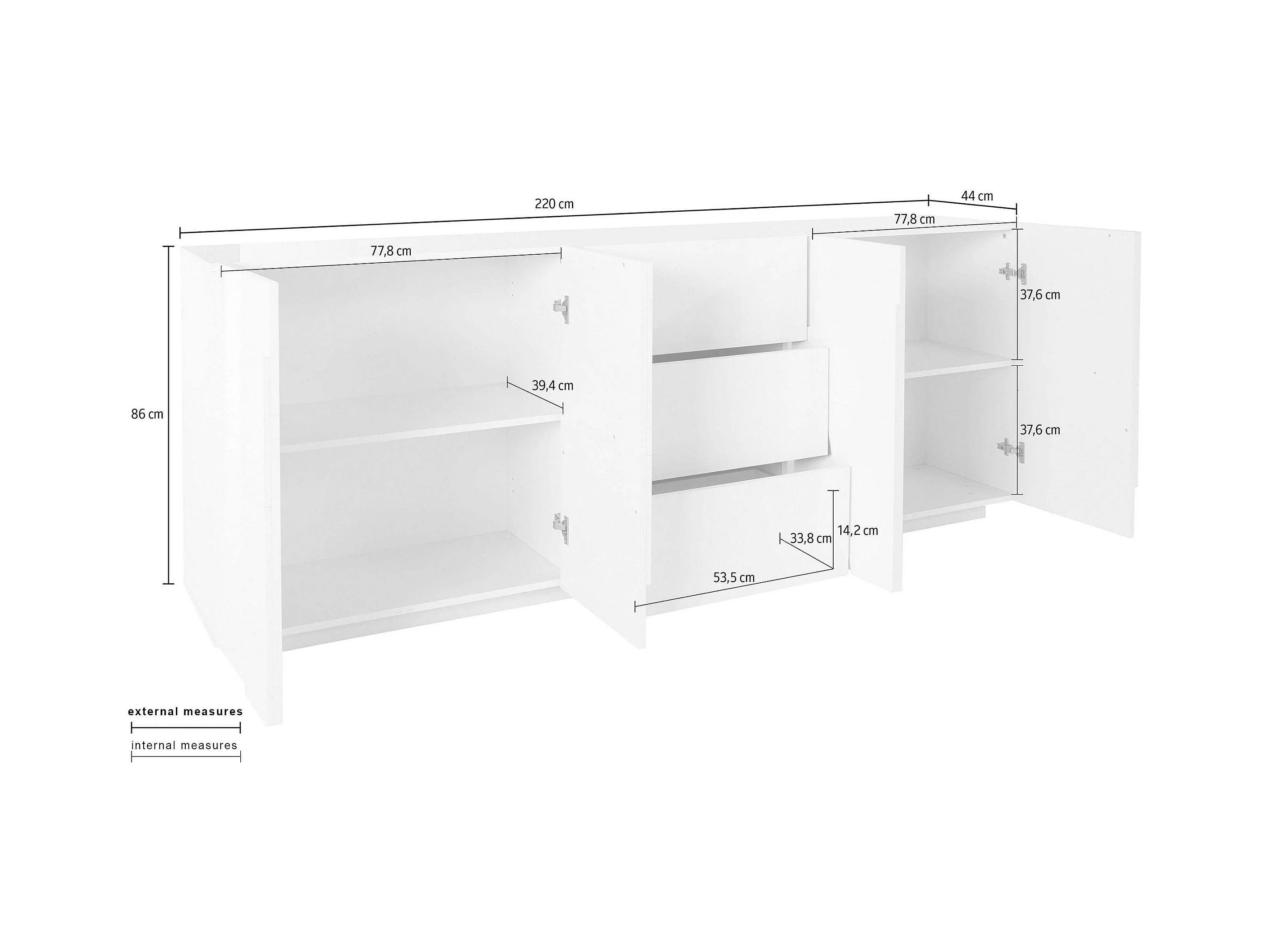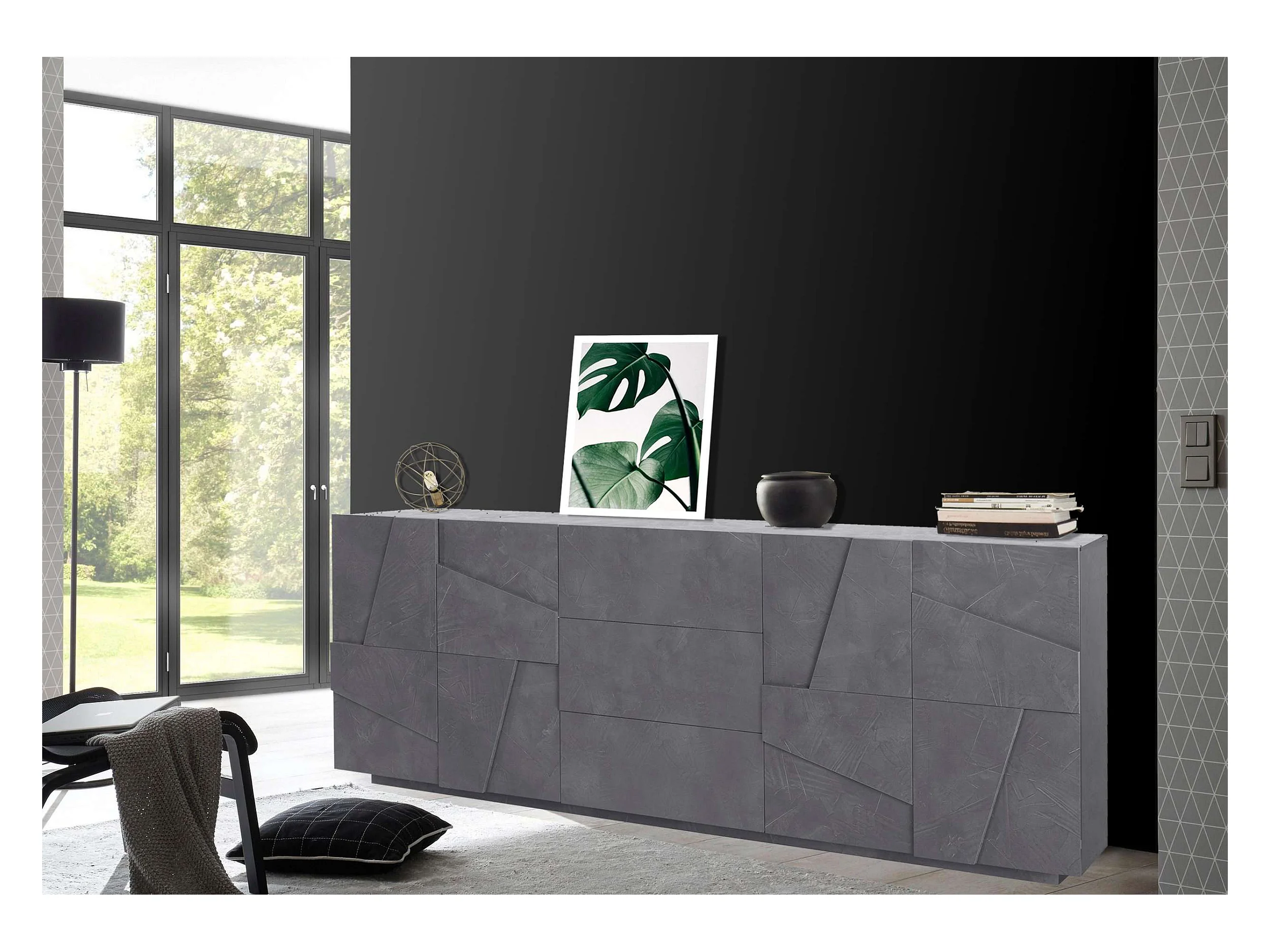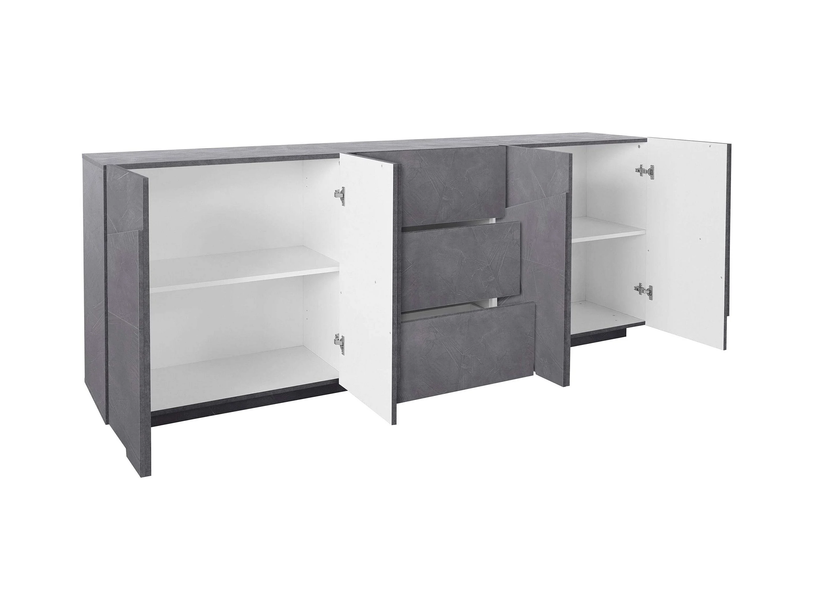 Buffet salon en bois 4 portes 3 Tiroirs 220 cm Ardoise Ping Wide