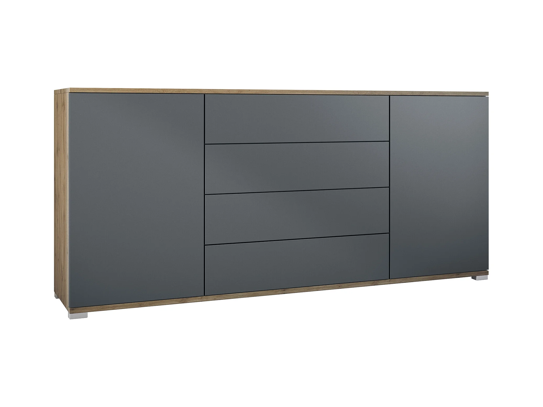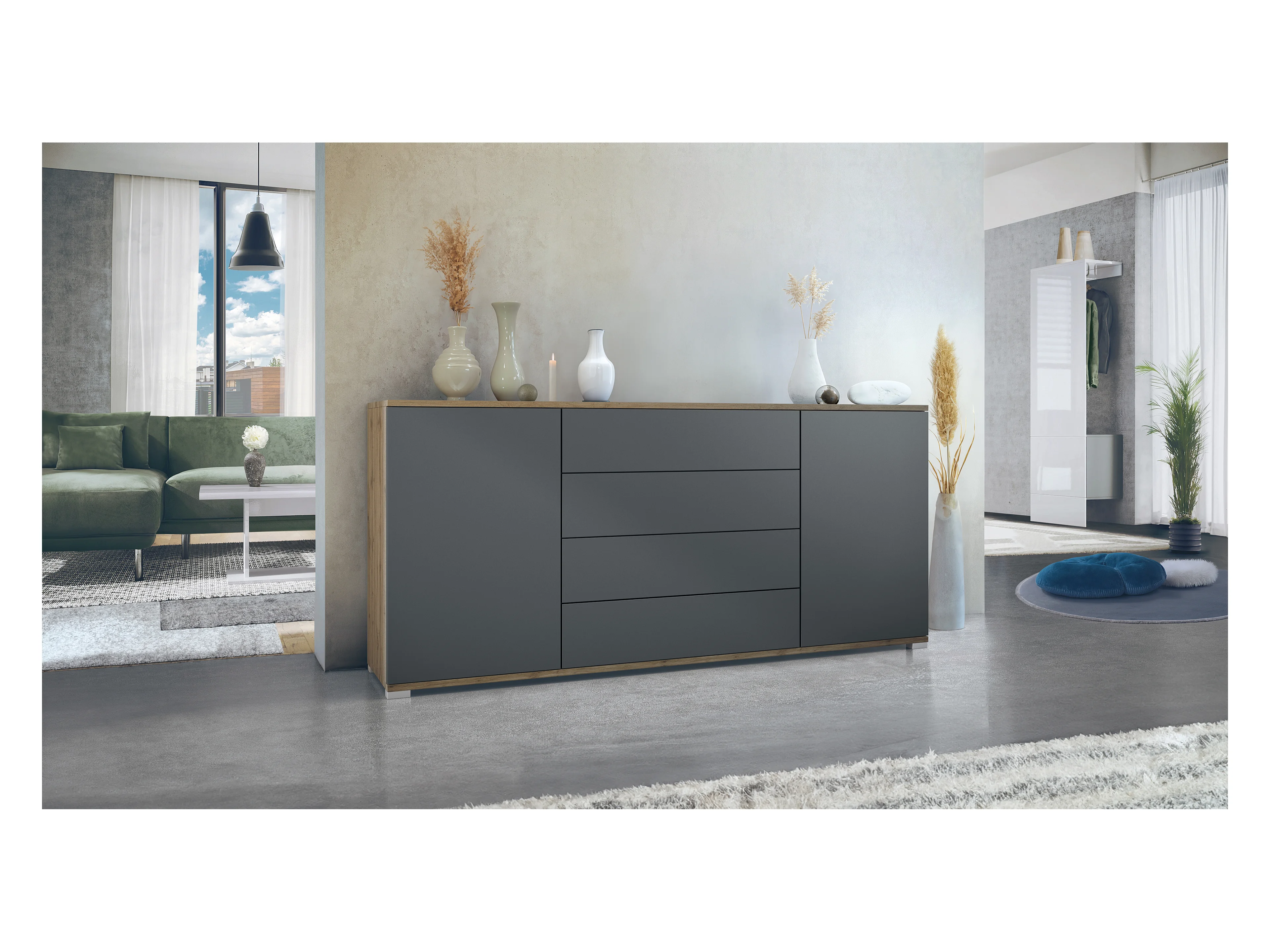 Buffet Santo V2, Enfilade avec 2 portes et 4 tiroirs, Chêne Evoke / anthracite mat (166,5 x 75,5 x 35 cm)