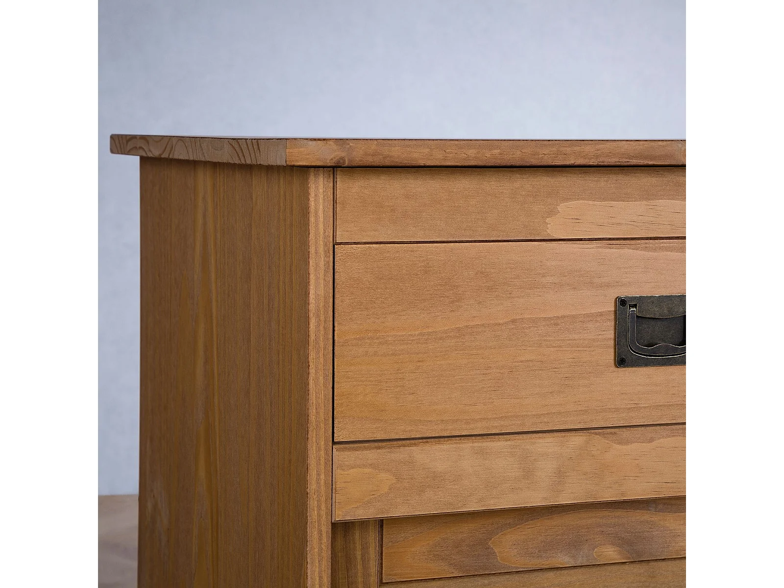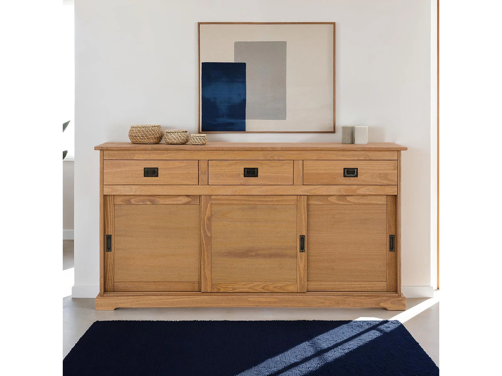 Buffet SAVONA bahut vaisselier commode avec 3 tiroirs et 3 portes coulissantes, en pin massif lasuré brun