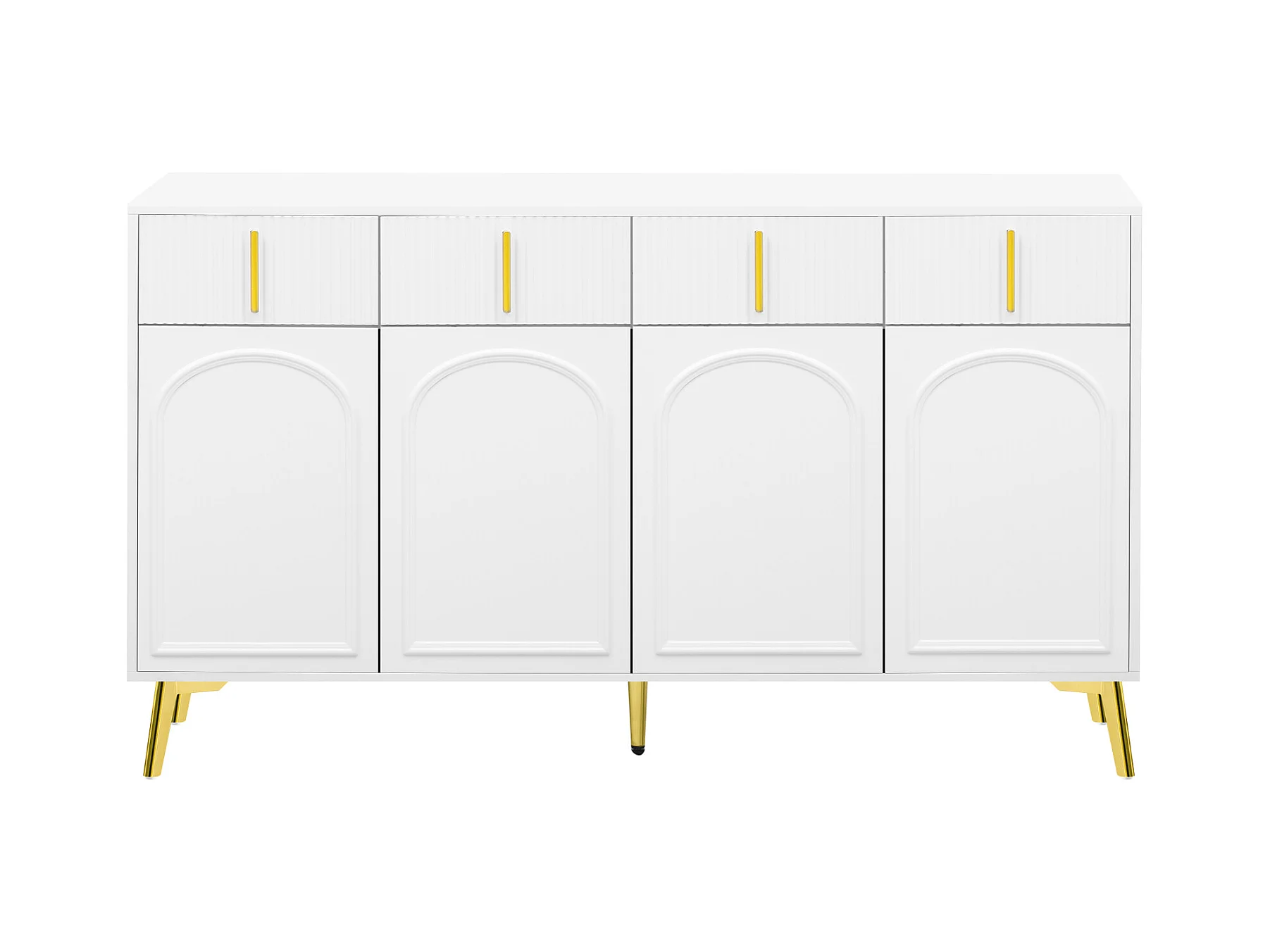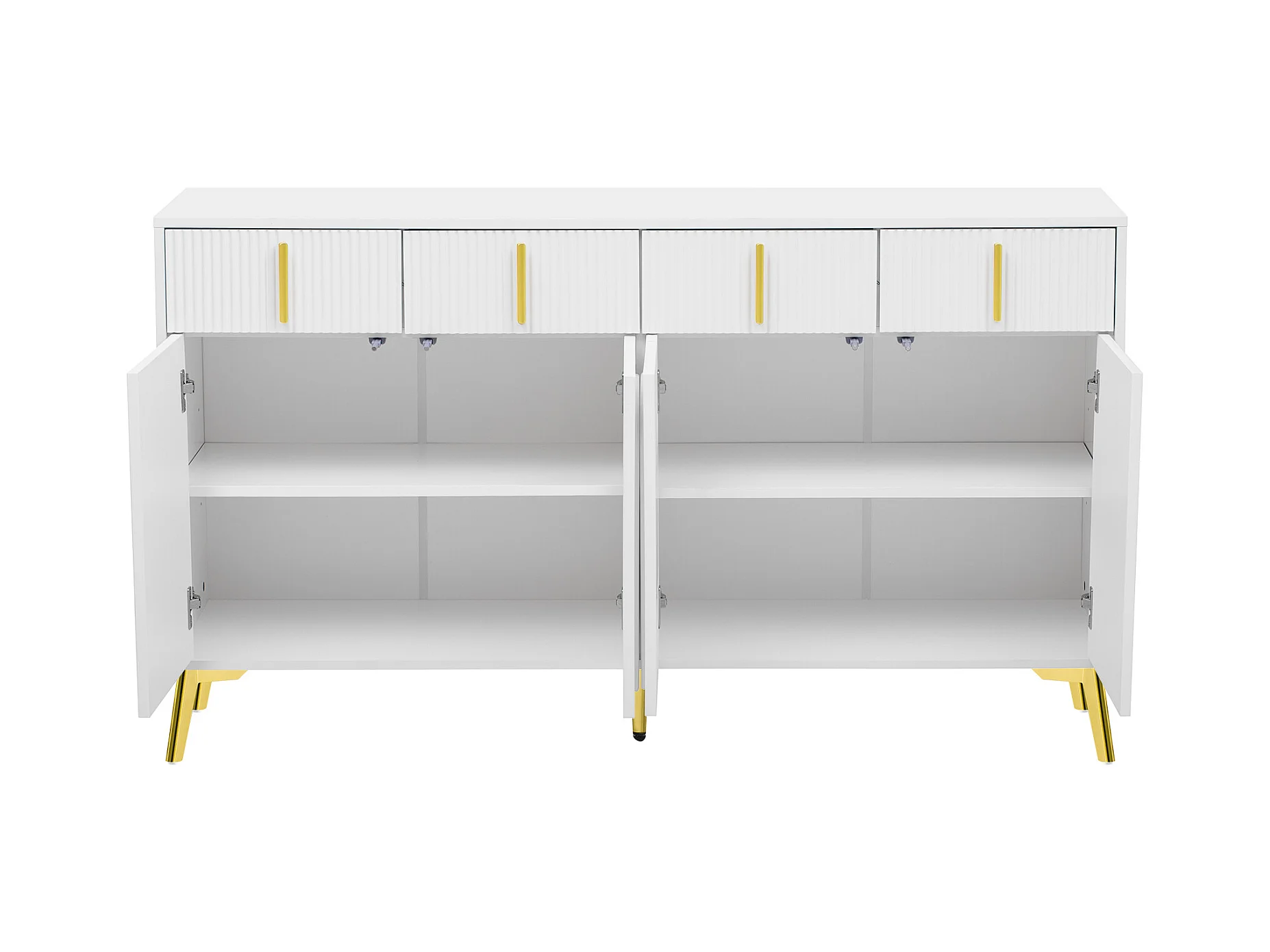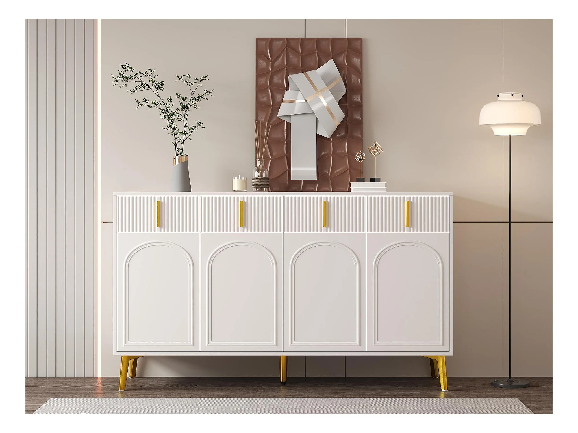 Buffet scandinave - 4 portes et 4 tiroirs - avec étagères réglables - Blanc