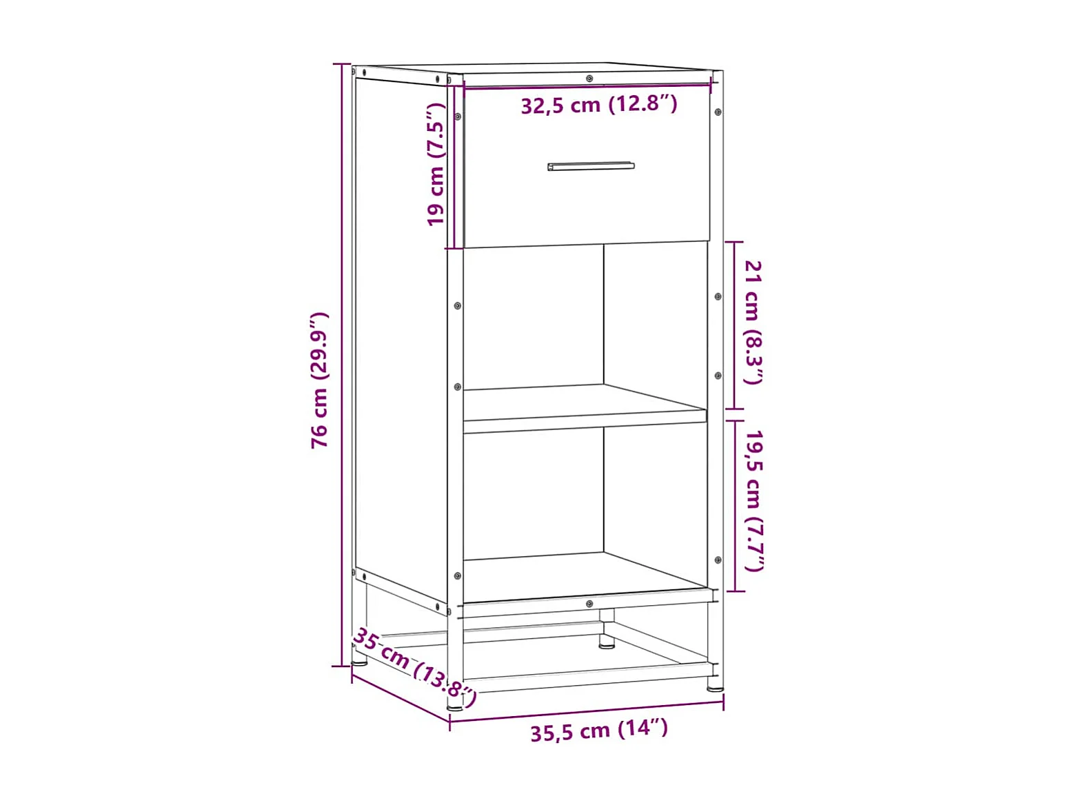 Buffet sonoma gris 35,5x35x76 cm bois d'ingénierie et métal