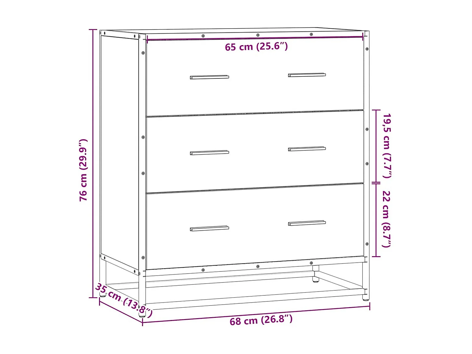 Buffet sonoma gris 68x35x76 cm bois d'ingénierie