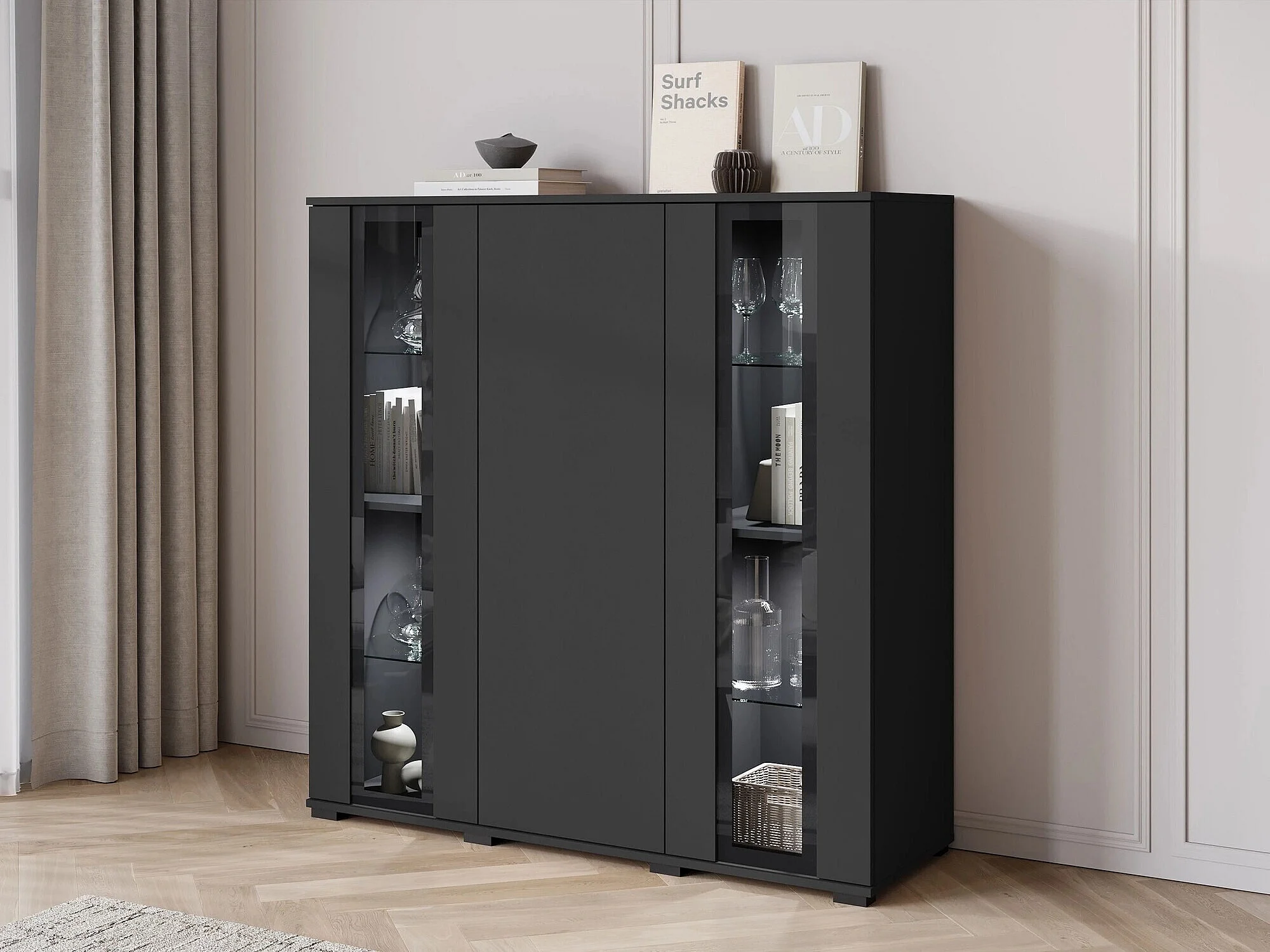 Buffet Torcame 100, Noir, 122x120x40cm, Verre trempé|Stratifié