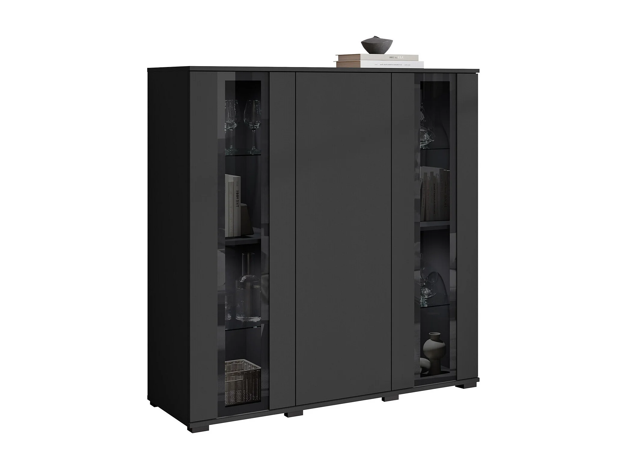 Buffet Torcame 100, Noir, 122x120x40cm, Verre trempé|Stratifié