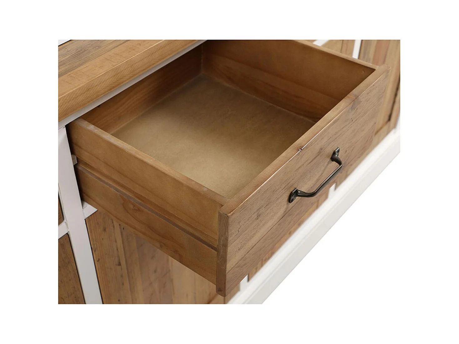 Buffet 2 portes 3 tiroirs en bois massif blanc 180 cm - Macha