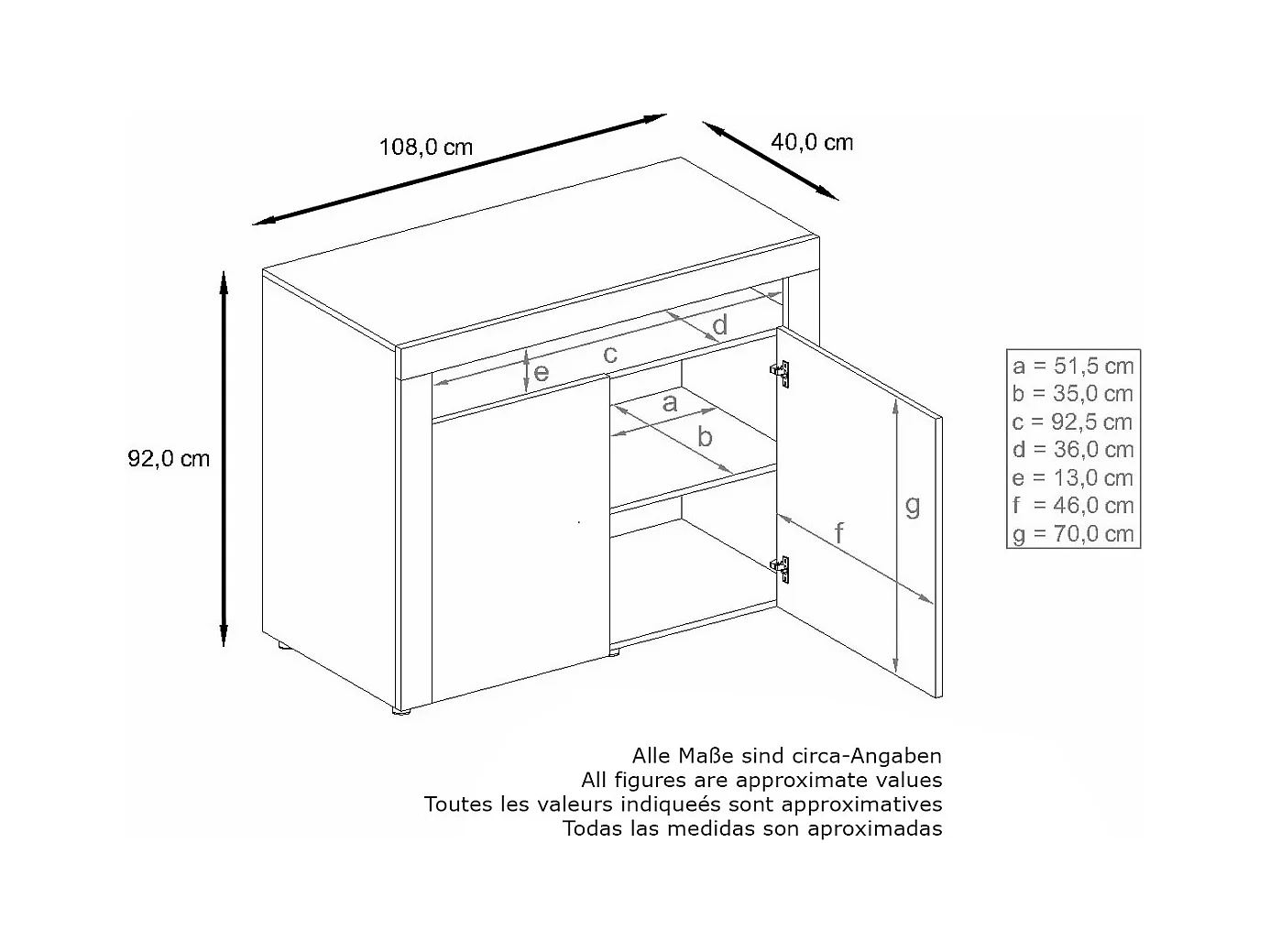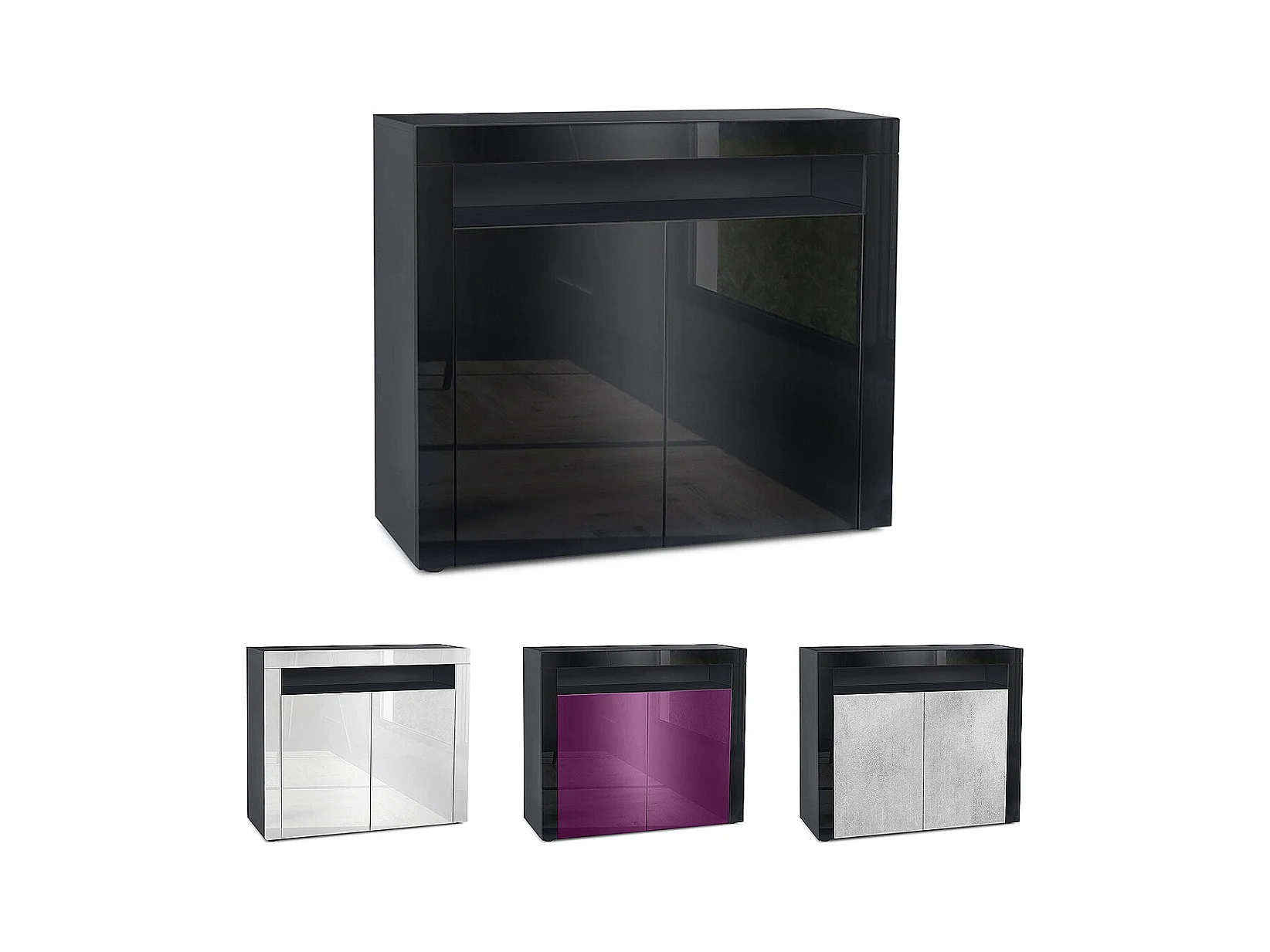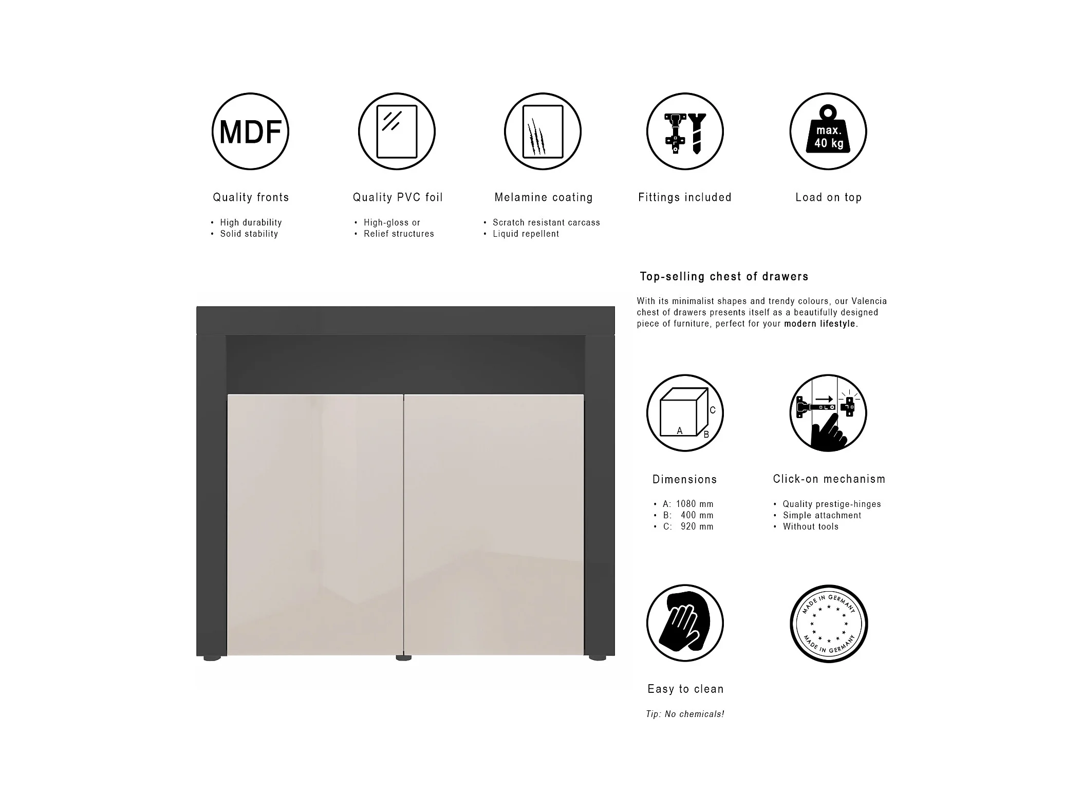 Buffet Valencia, Commode avec 2 portes et 1 compartiment ouvert, Noir mat/blanc haute brillance/blanc haute brillance (108 x 92 x 40 cm)