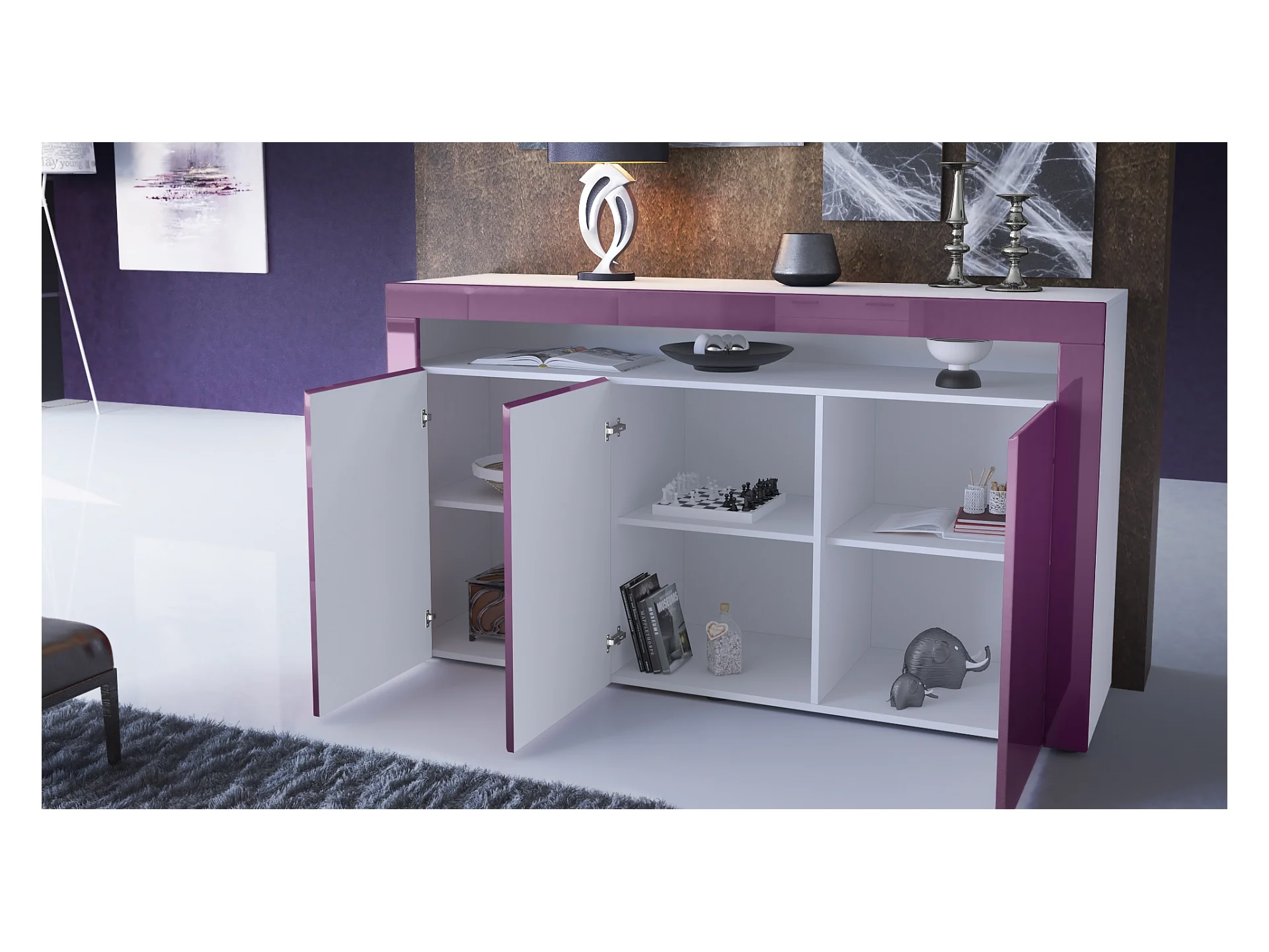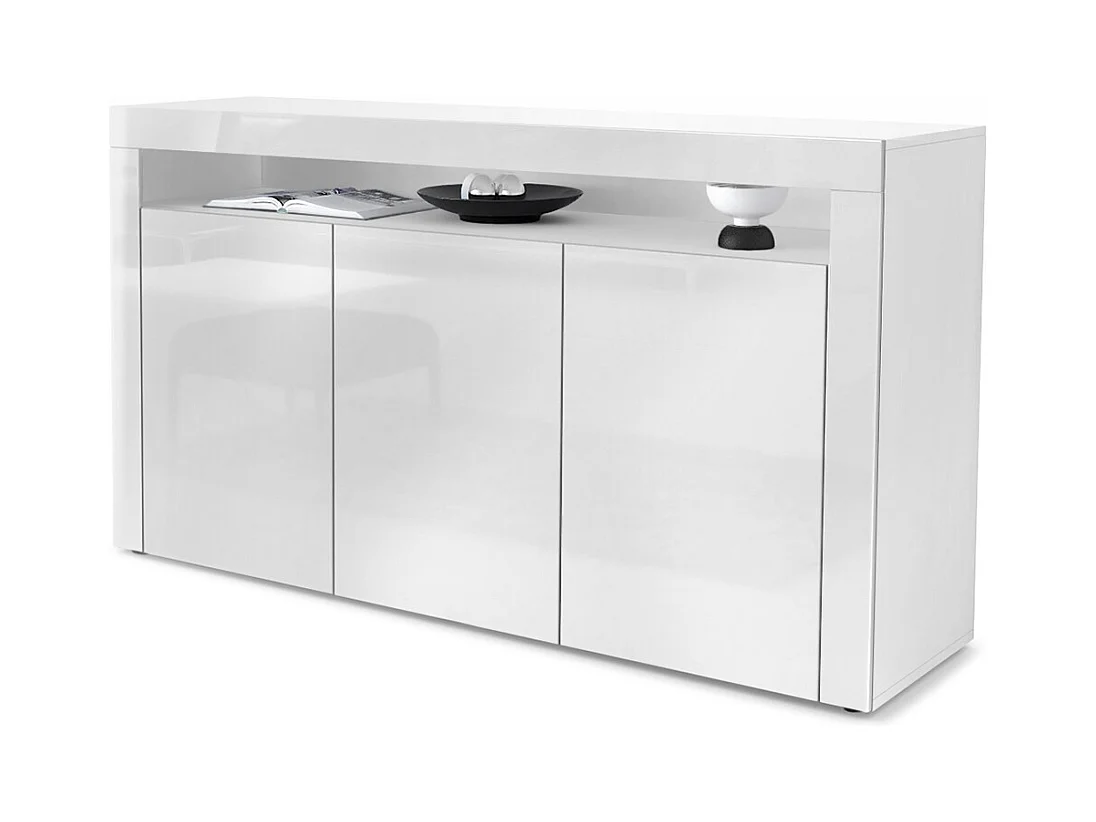 Buffet Valencia, Commode avec 3 portes et 1 compartiment ouvert, Blanc mat/blanc haute brillance/blanc haute brillance (155 x 92 x 40 cm)