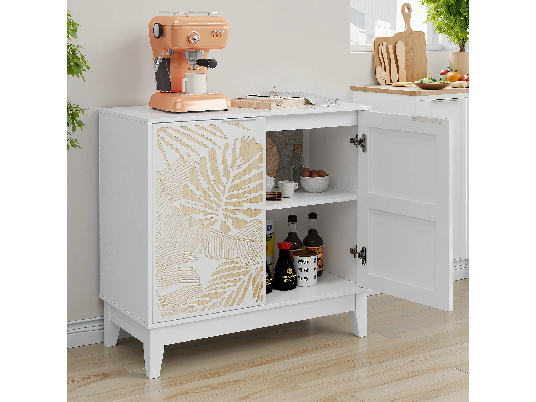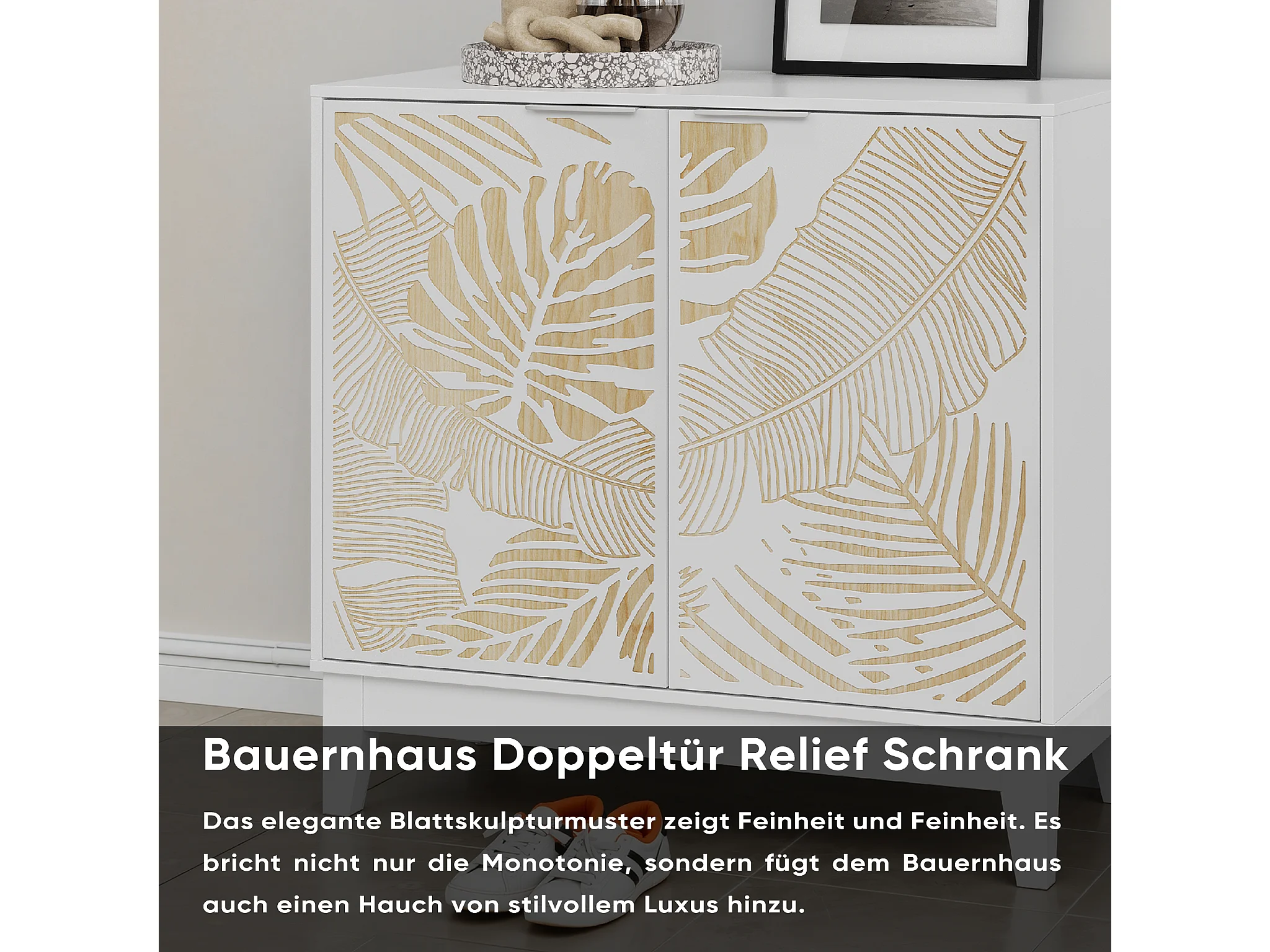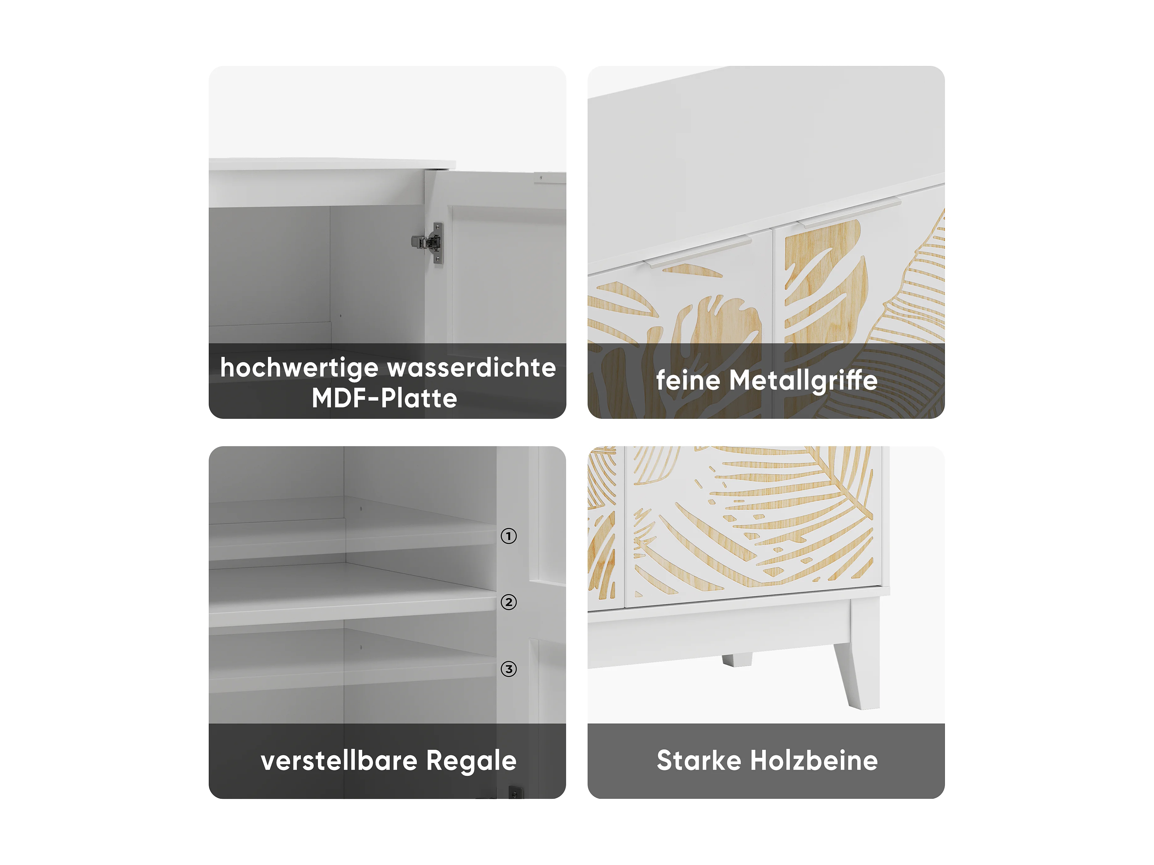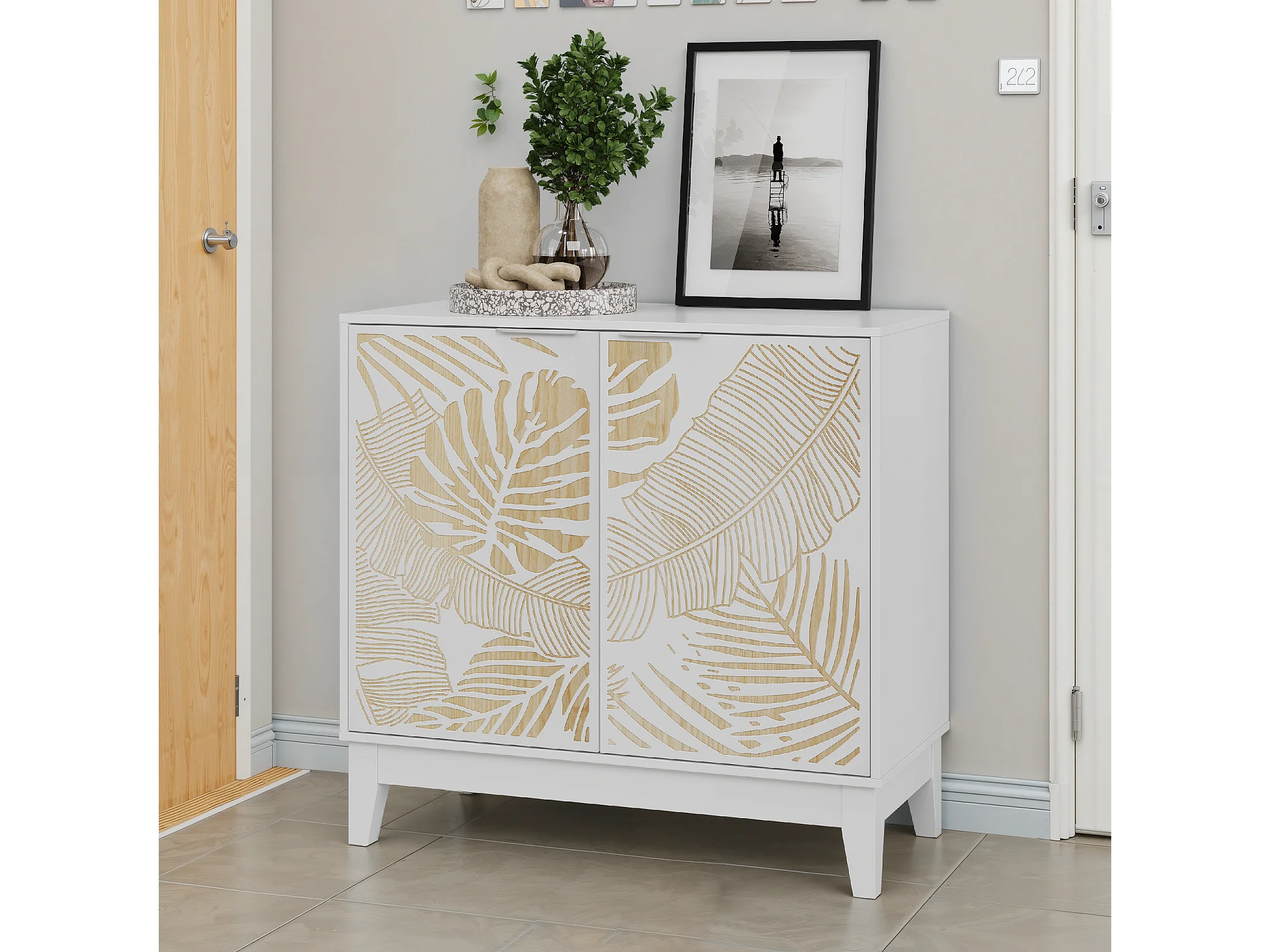 Buffet vintage avec portes décoratives en feuille, MDF, blanc (80x38x76 cm)