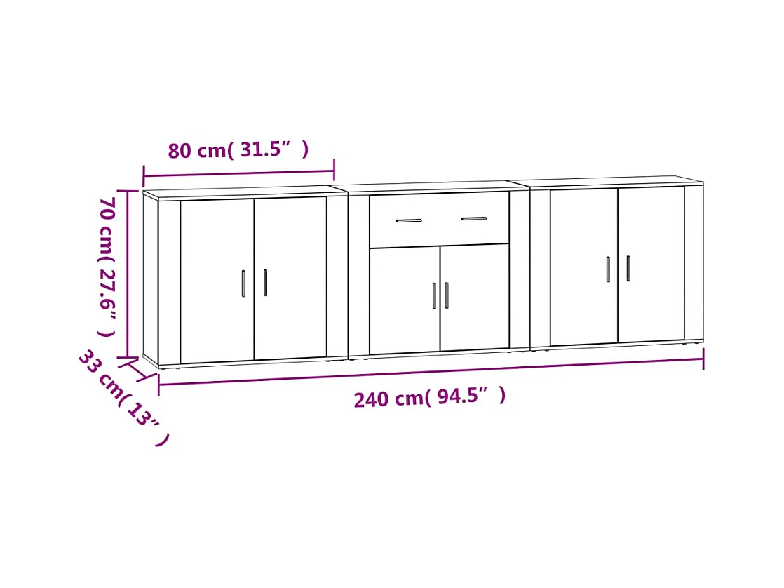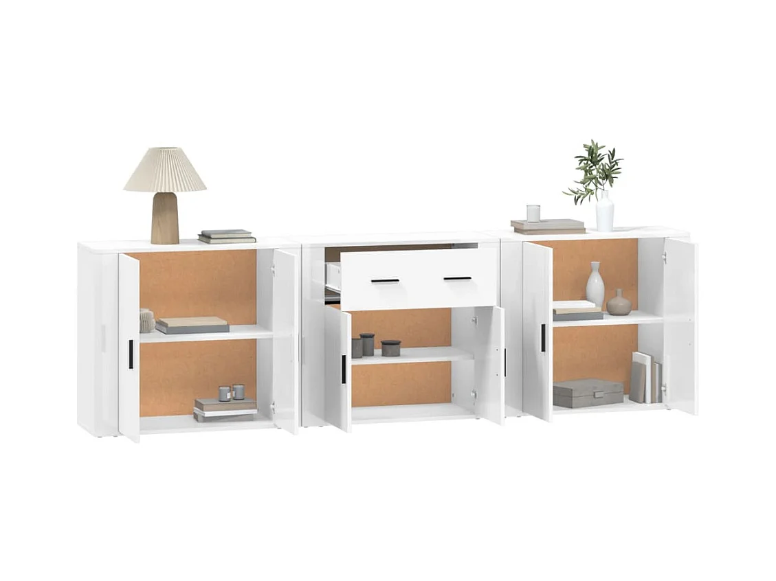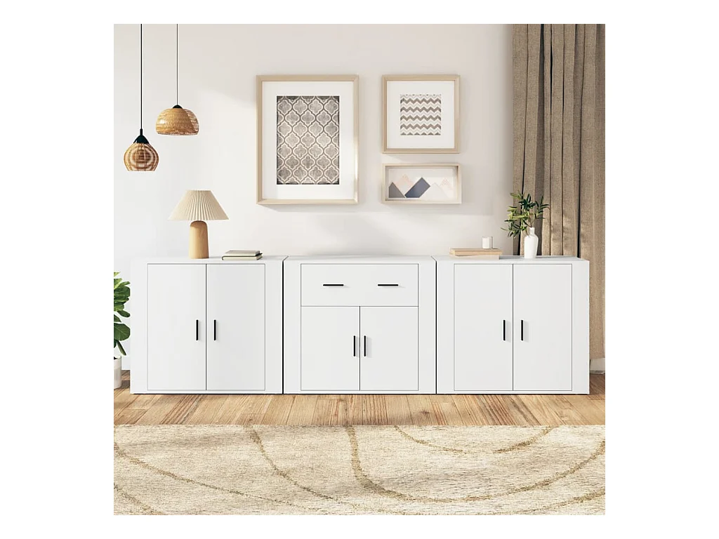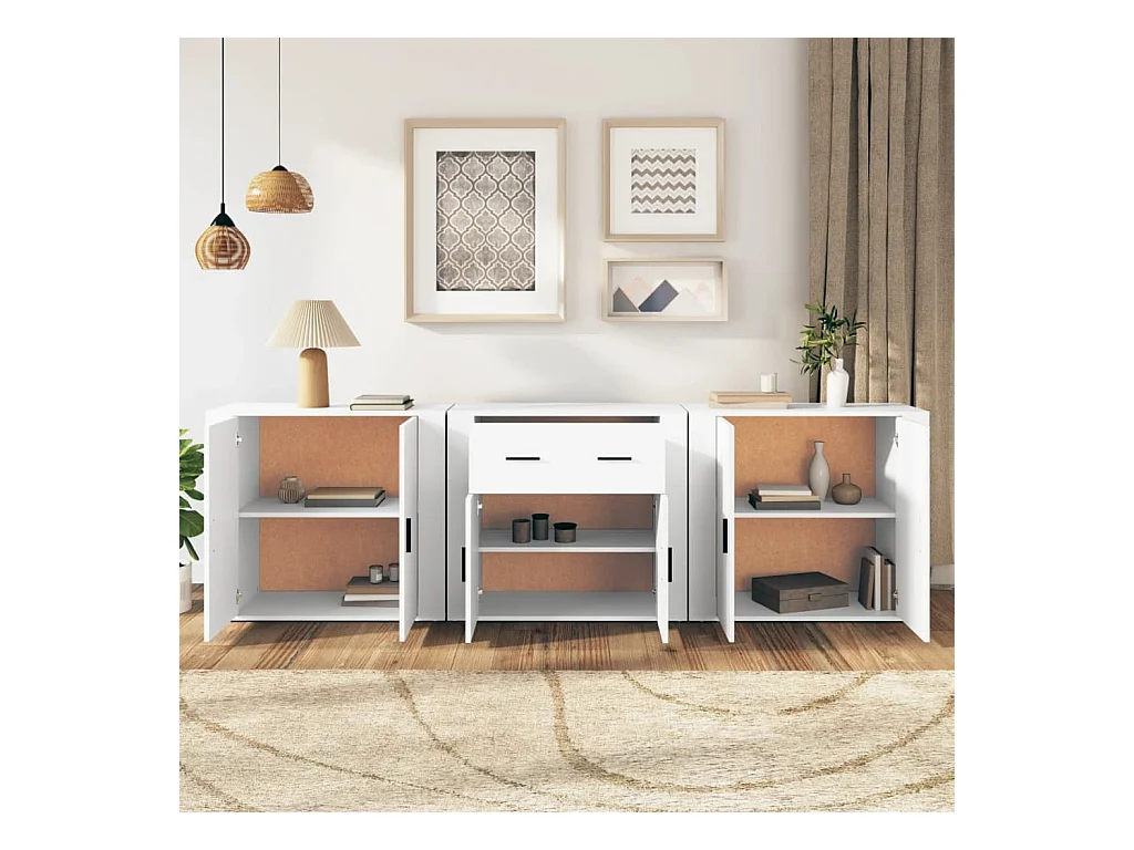 Buffets 3 pcs Blanc Bois d'ingénierie