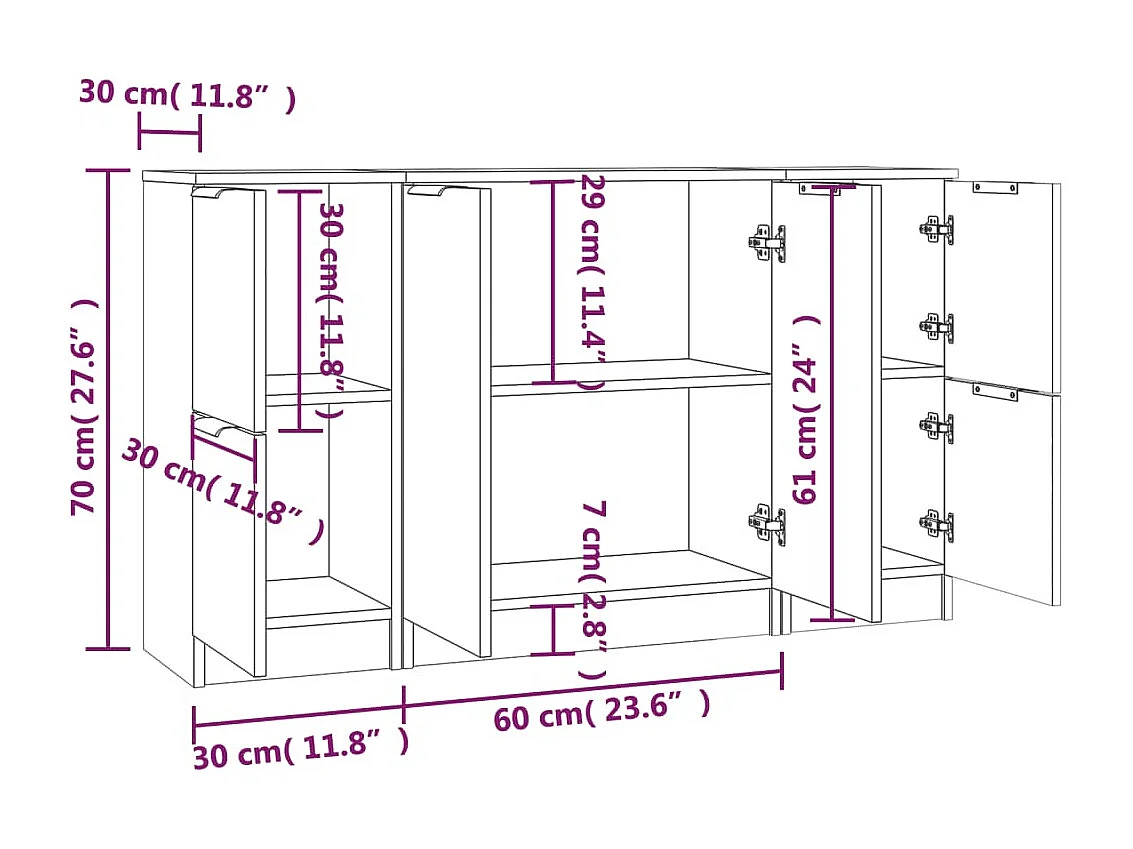 Buffets 3 pcs Chêne marron Bois d'ingénierie