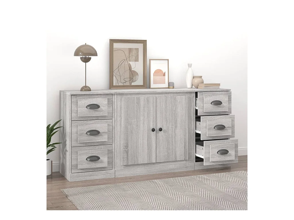 Buffets 3 pcs Sonoma gris Bois d'ingénierie EGER91417
