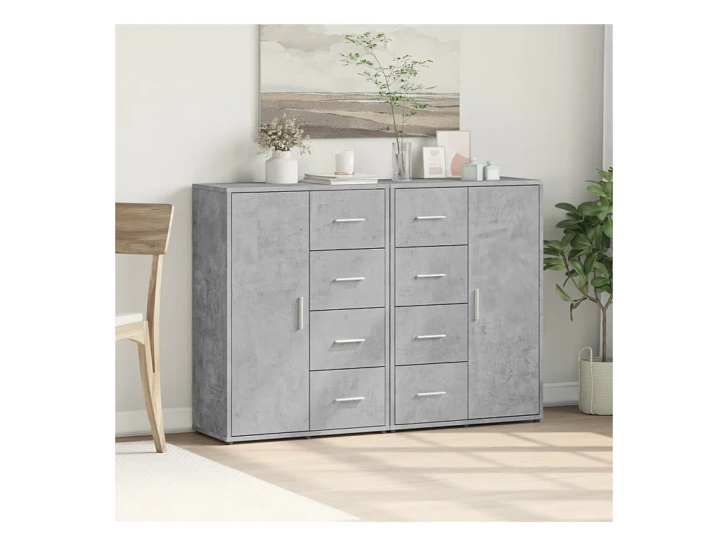Buffets | Bahuts | Meuble de rangement 2 pcs gris béton 60x31x84 cm bois d'ingénierie