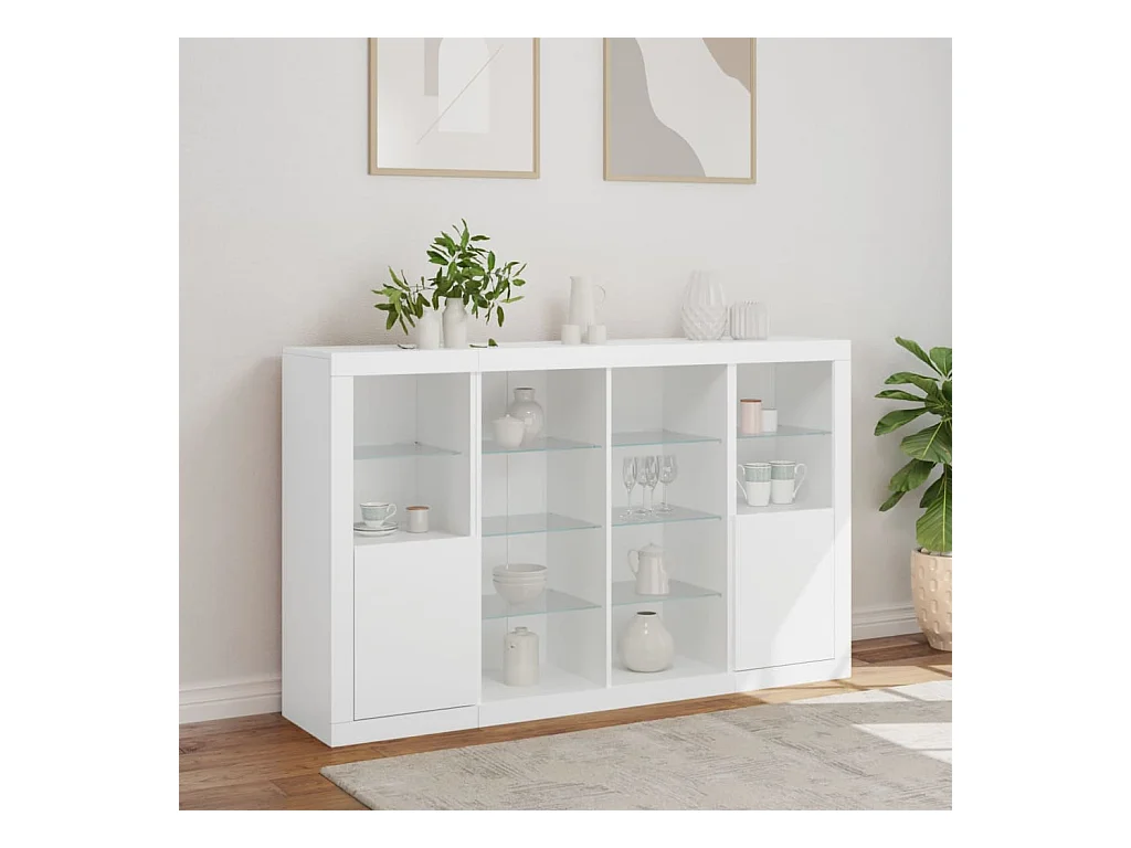 Buffets | Bahuts | Meuble de rangement avec lumières LED 3 pcs blanc bois d'ingénierie