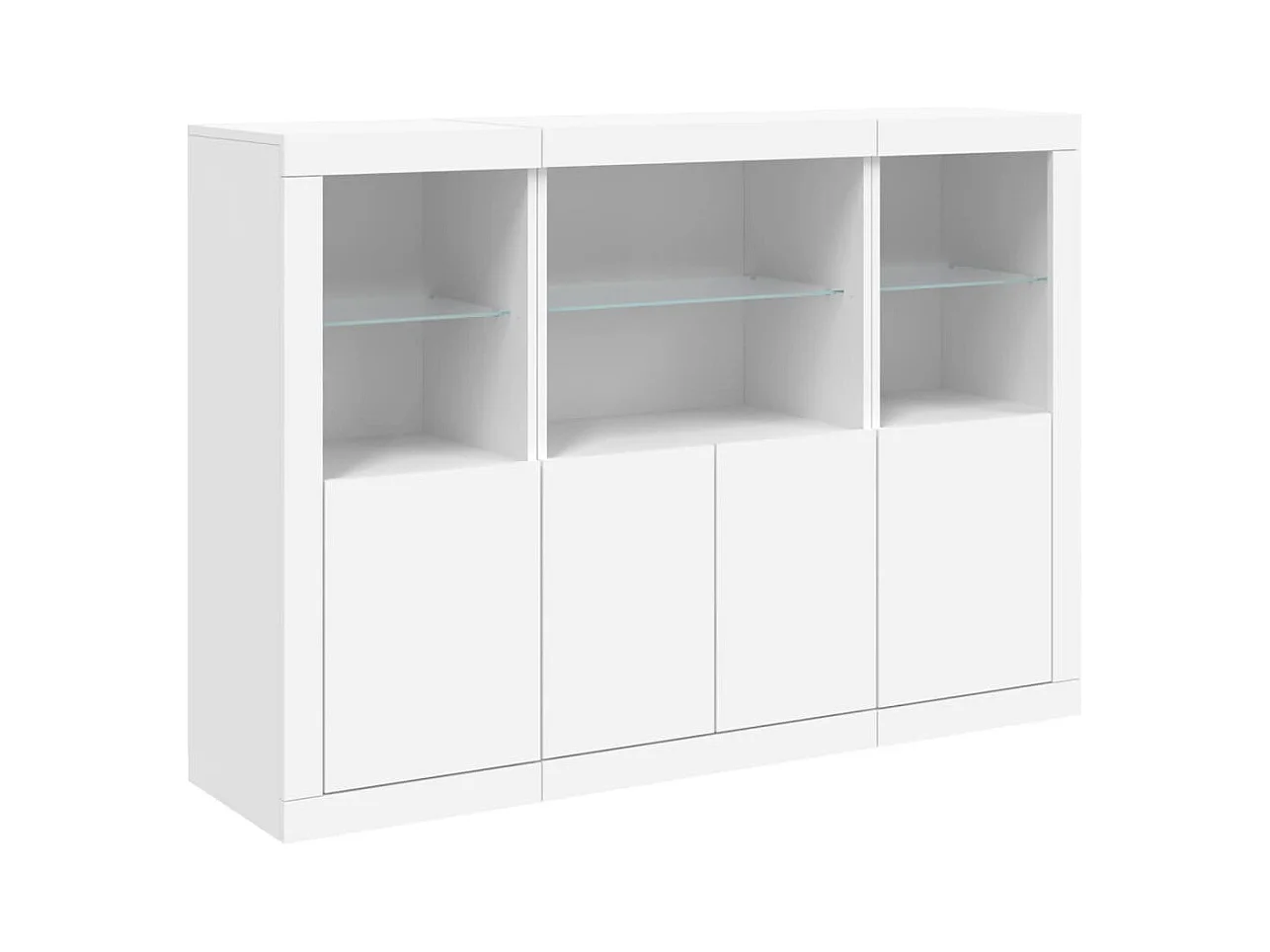 Buffets | Bahuts | Meuble de rangement avec lumières LED 3 pcs blanc bois d'ingénierie