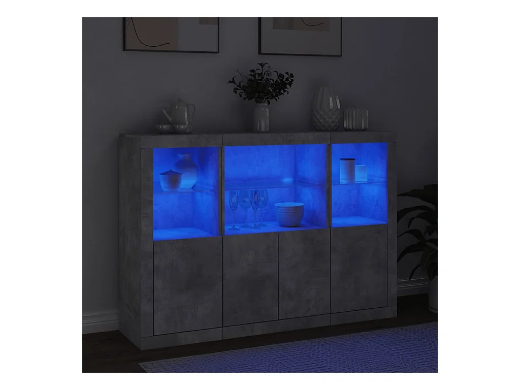 Buffets | Bahuts | Meuble de rangement avec lumières LED 3 pcs gris béton bois d'ingénierie
