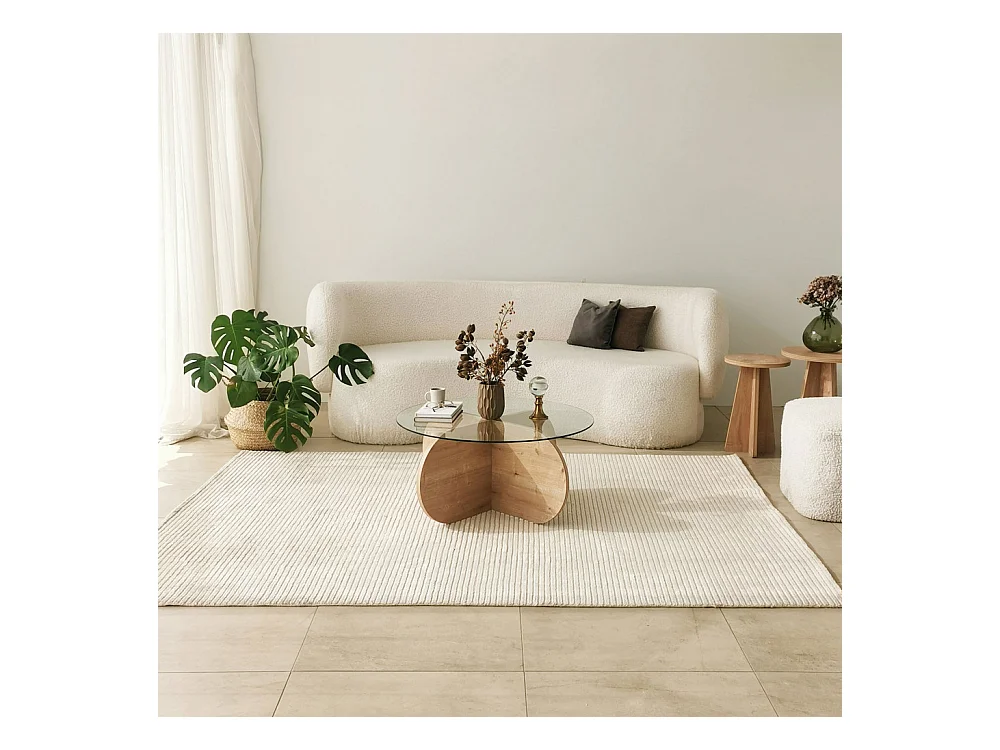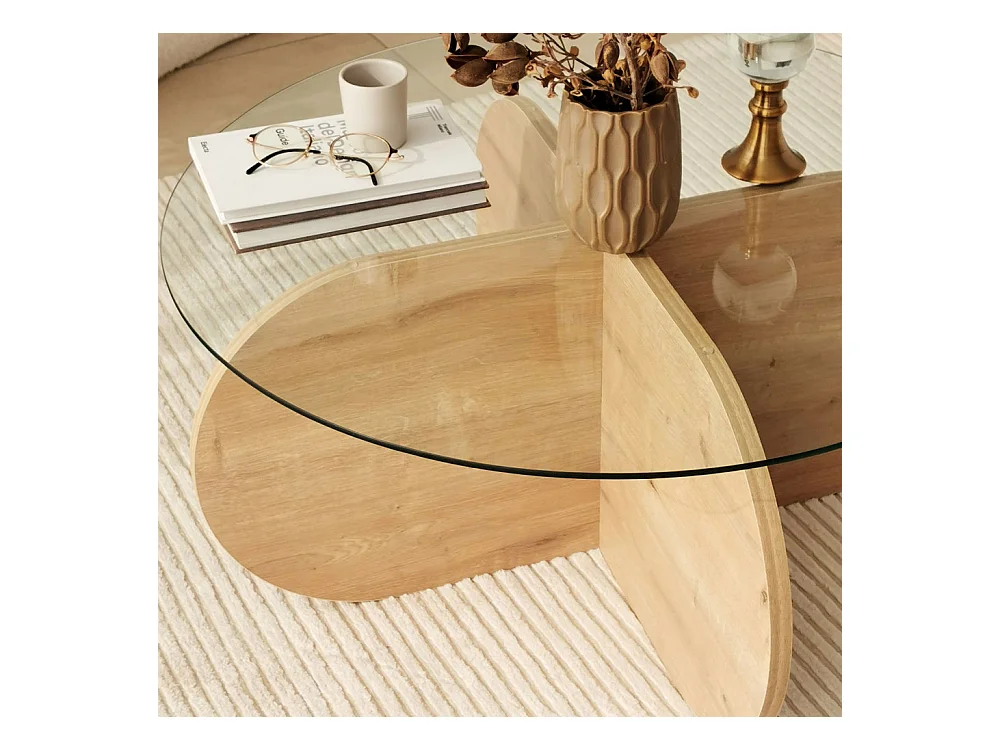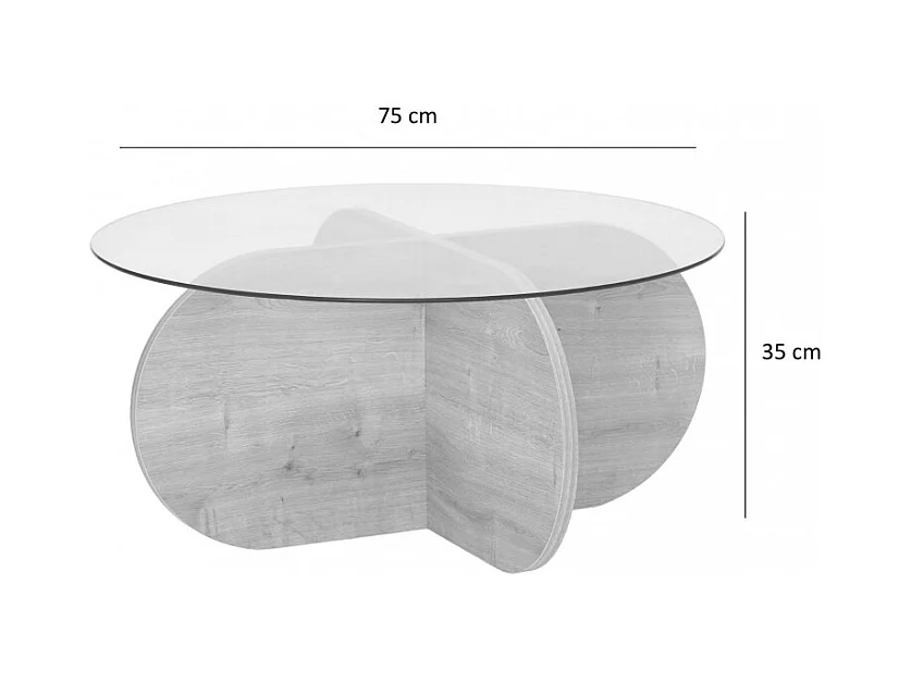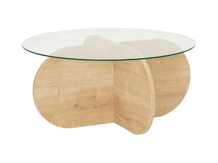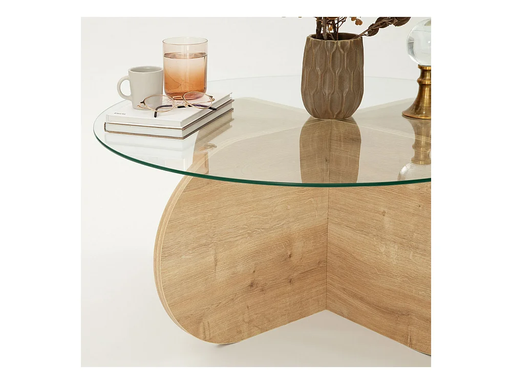 Bully - Table basse ronde en verre trempé et bois ø75cm - Bois clair