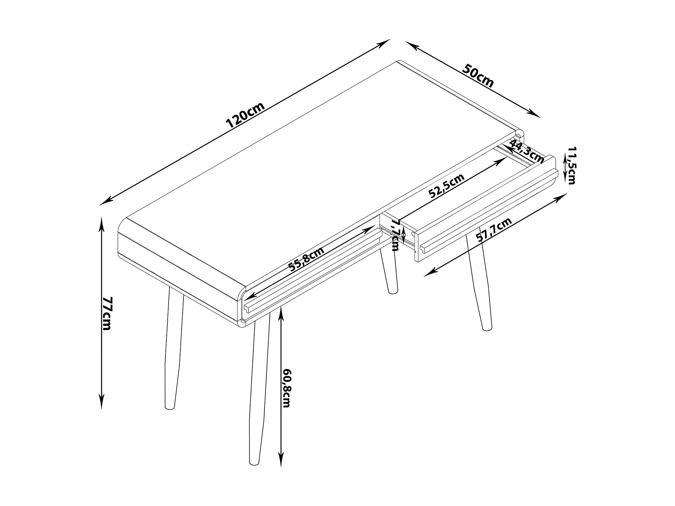 Chantal | Bureau à 2 tiroirs en effet bois gris et noir