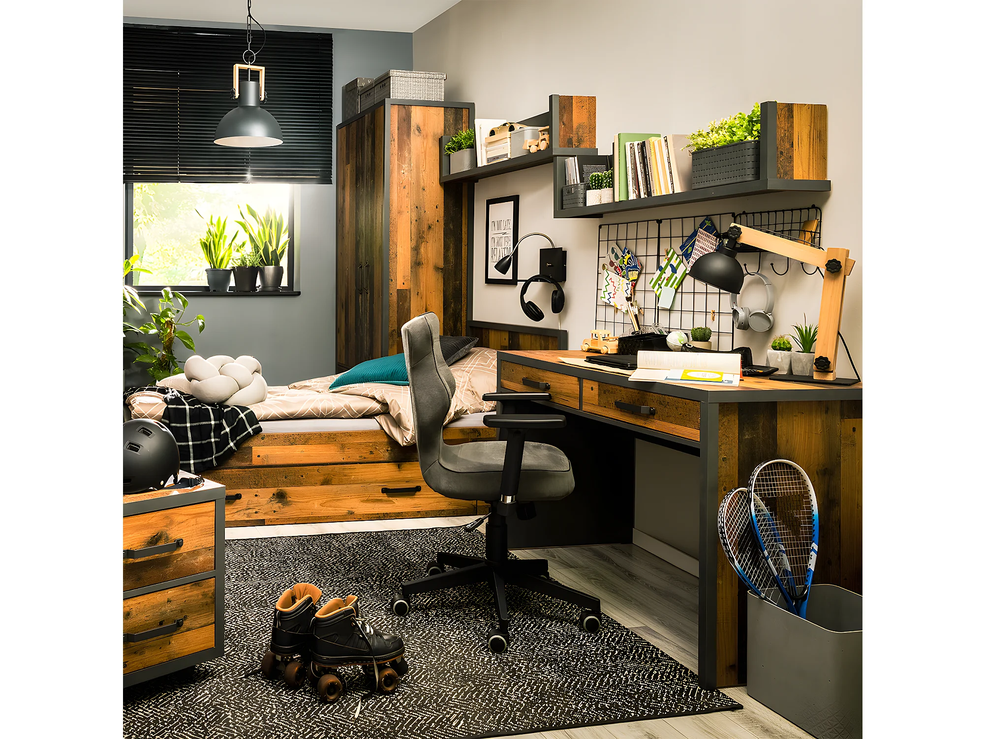 Bureau 2 tiroirs Paul Bois et Gris anthracite
