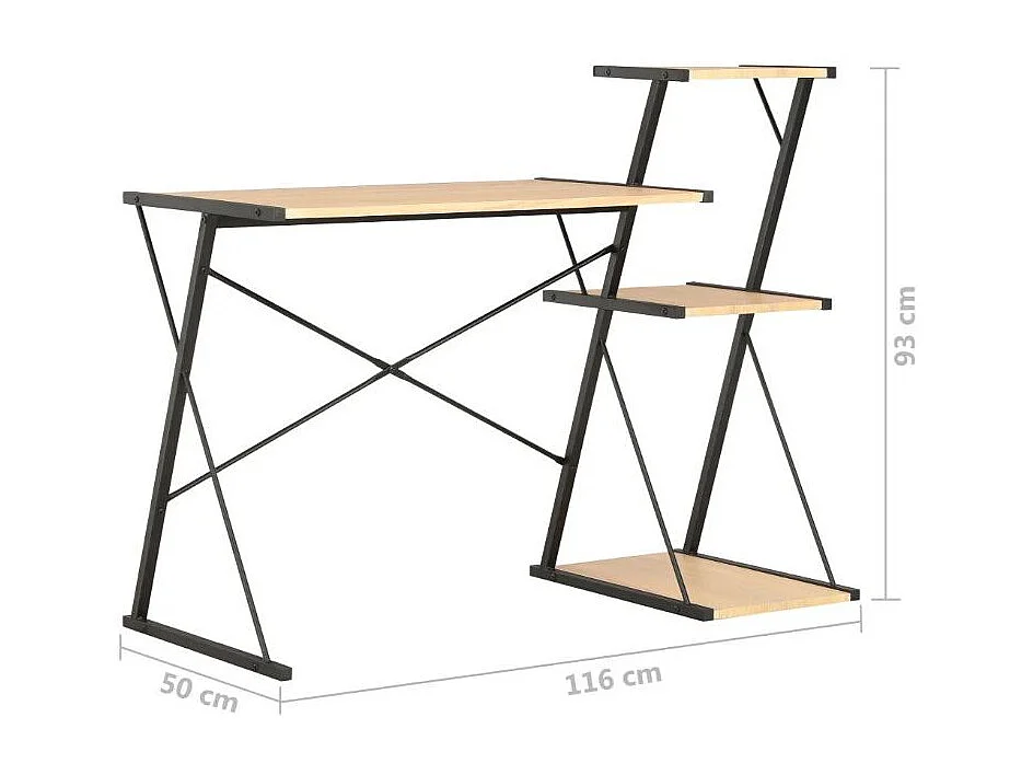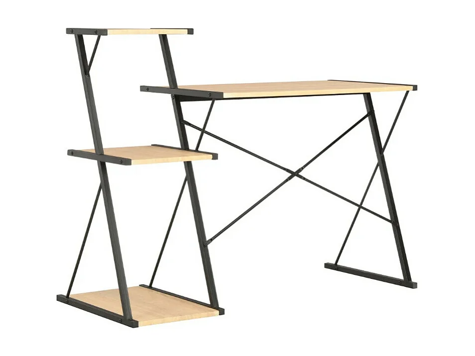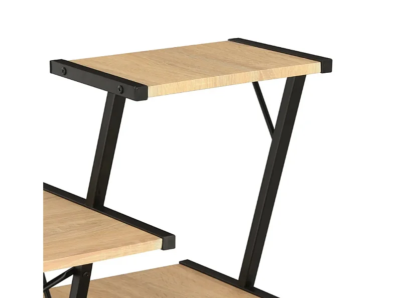 Bureau 3 étagères chêne clair et métal noir Kajal