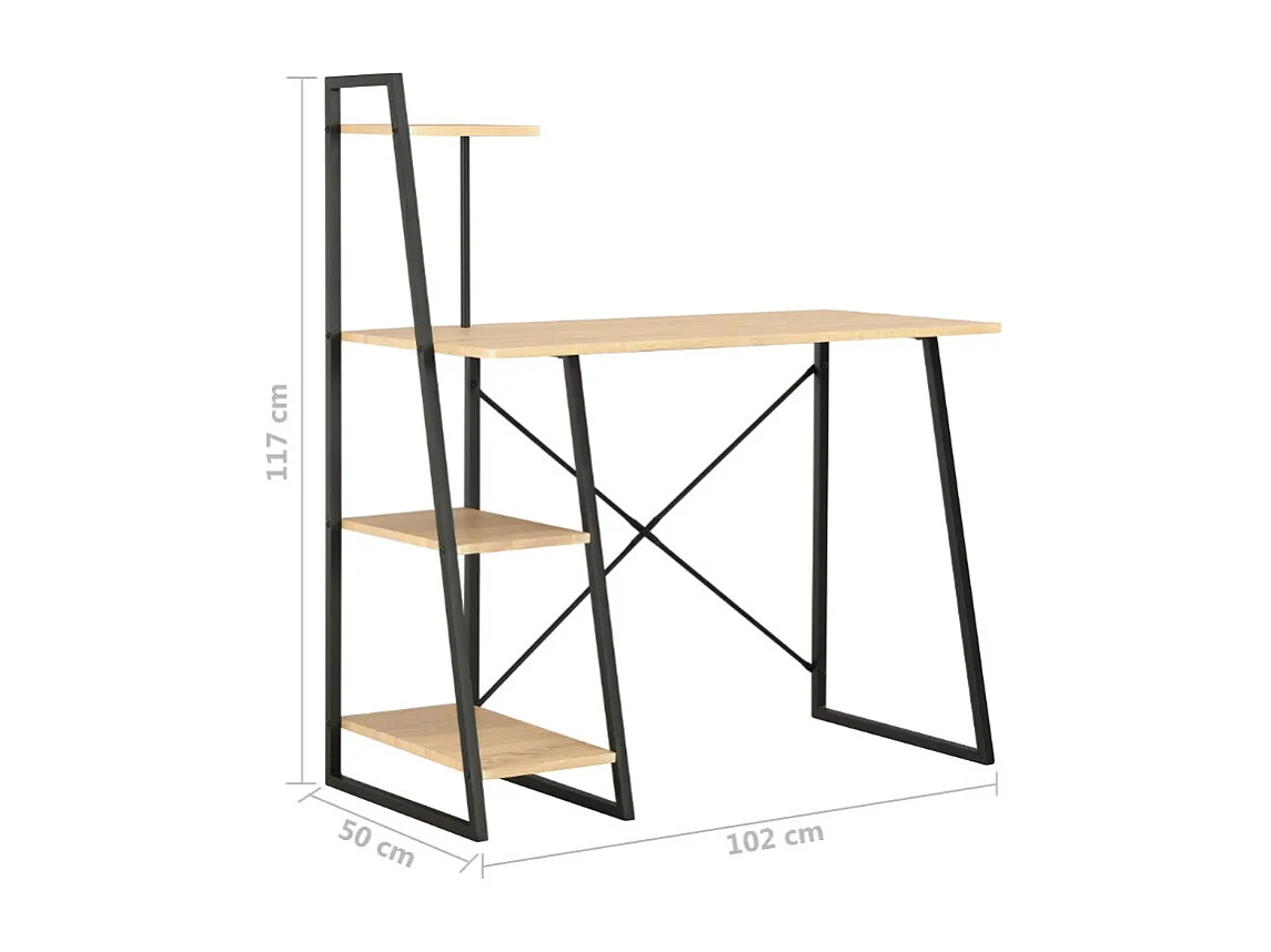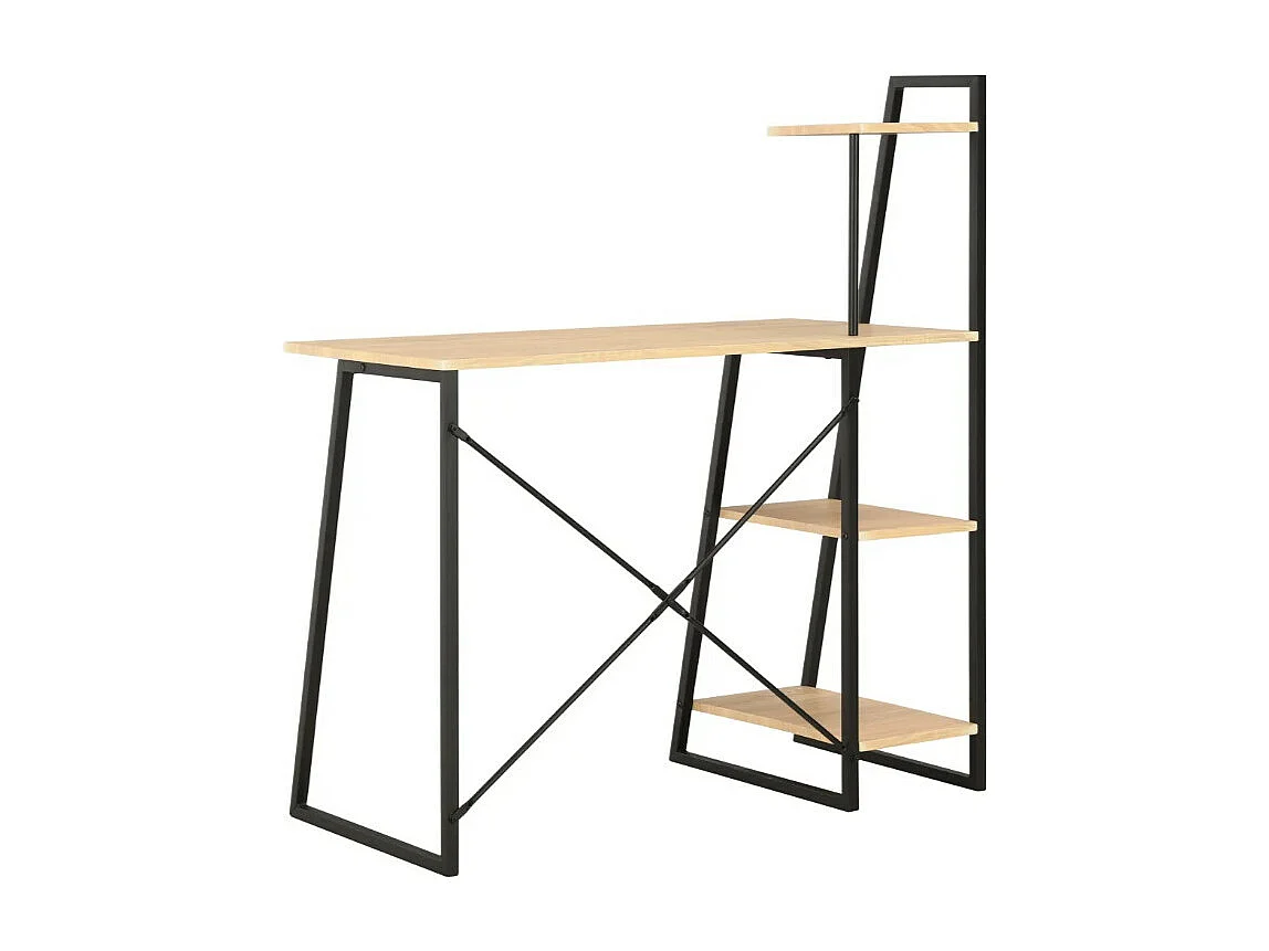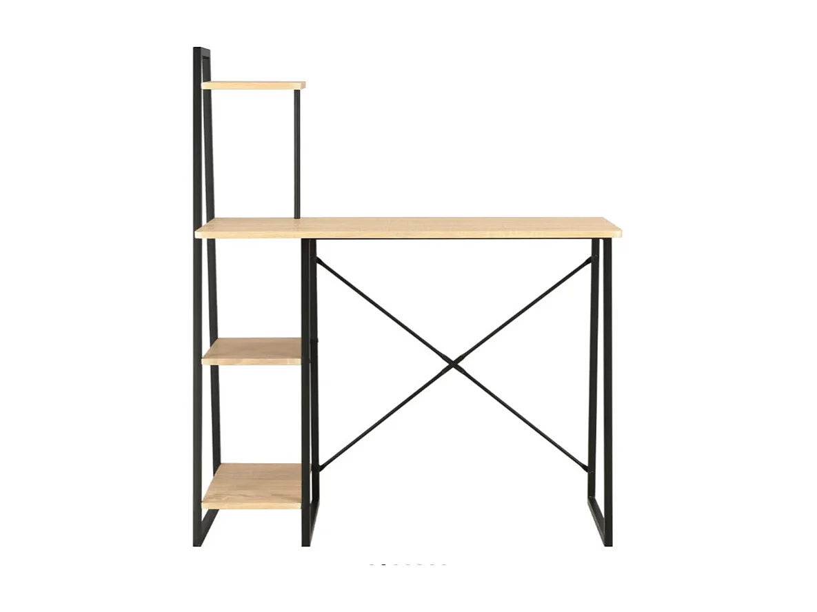 Bureau 3 étagères chêne clair et métal noir Kajal