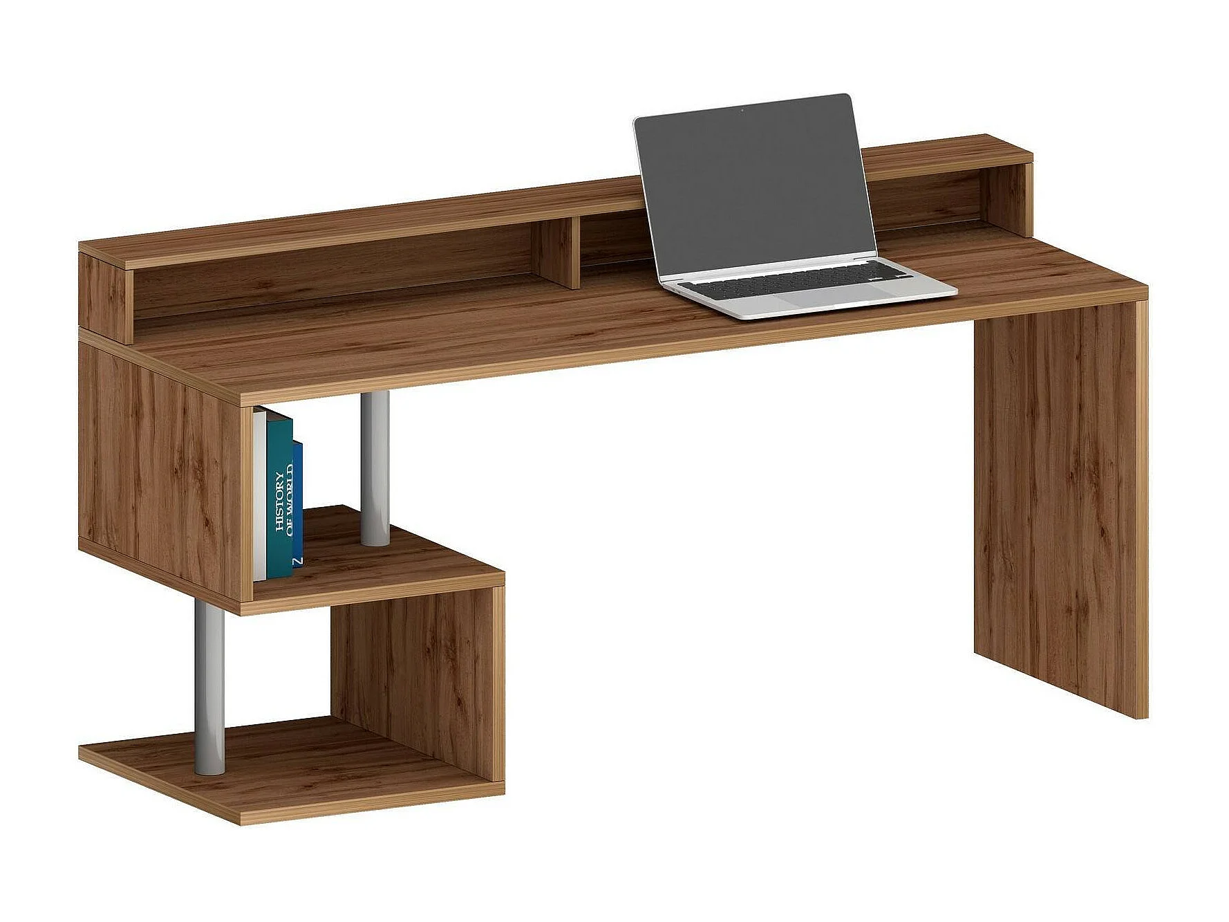 Bureau Alban, Bureau linéaire avec étagères de rangement avec lampes LED, Bureau polyvalent avec plateau, 180x60h93 cm, Chêne