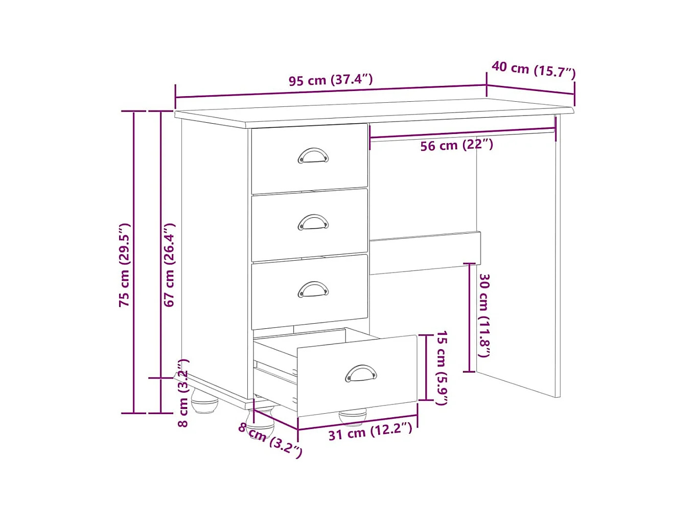 Bureau ASKIM Marron 95 x 40 x 75 cm Bois massif en pin