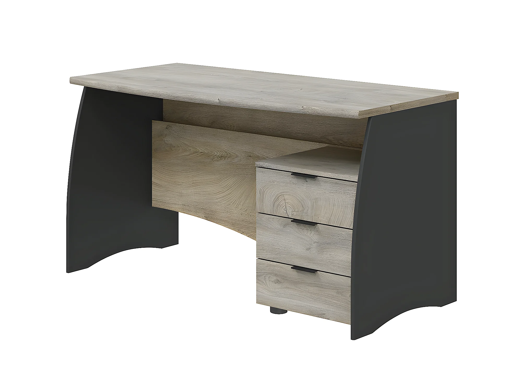 Bureau avec caisson de 3 tiroirs coloris chêne nœuds alaska / gris anthracite - Hauteur 74 x Largeur 136 x Profondeur 67 cm