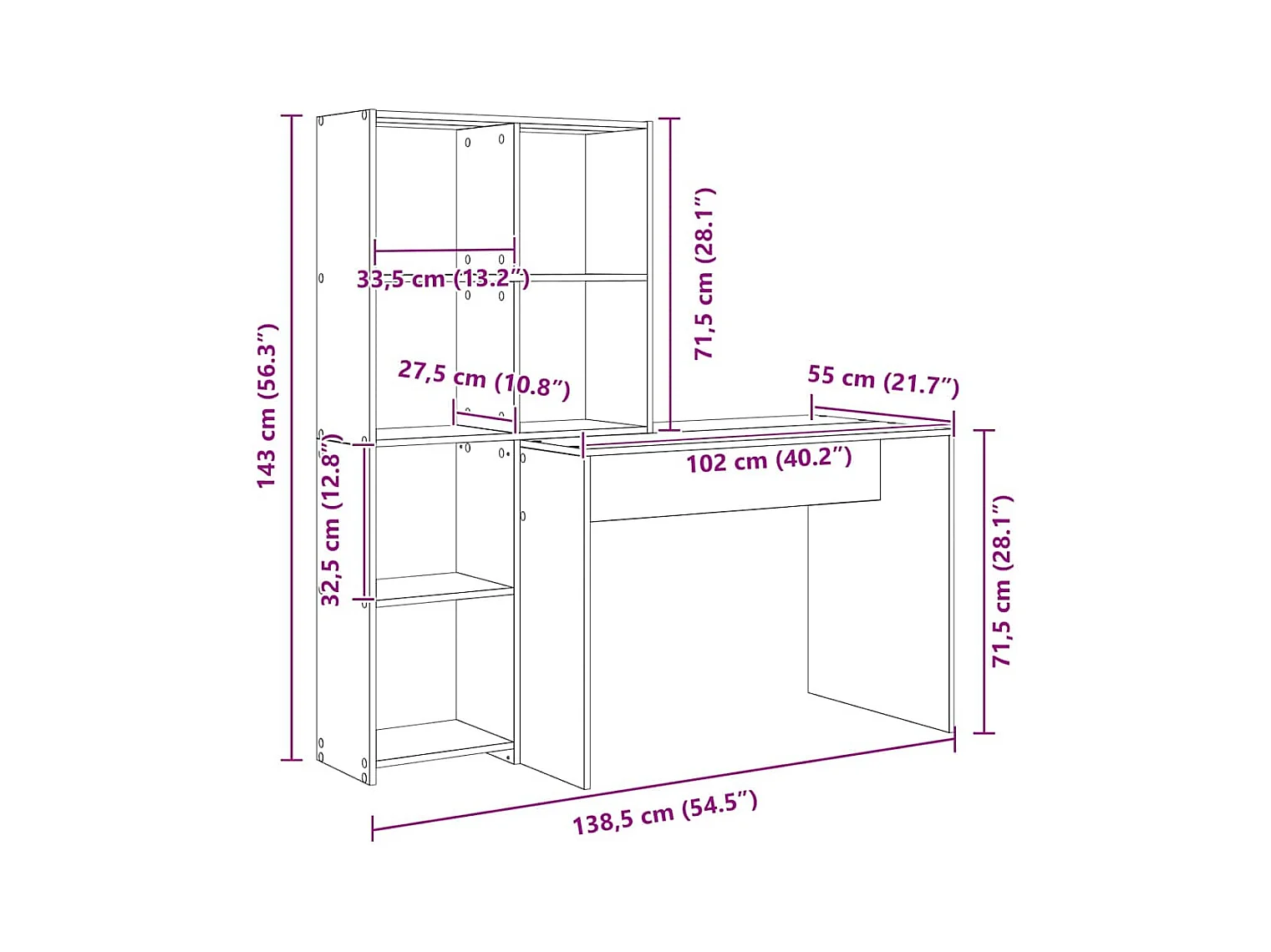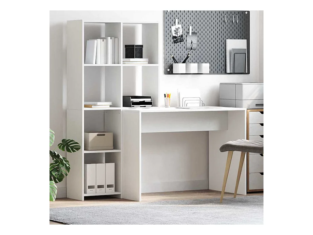 Bureau avec étagère Blanc 138.5 x 55 x 143 cm Bois d'ingénierie