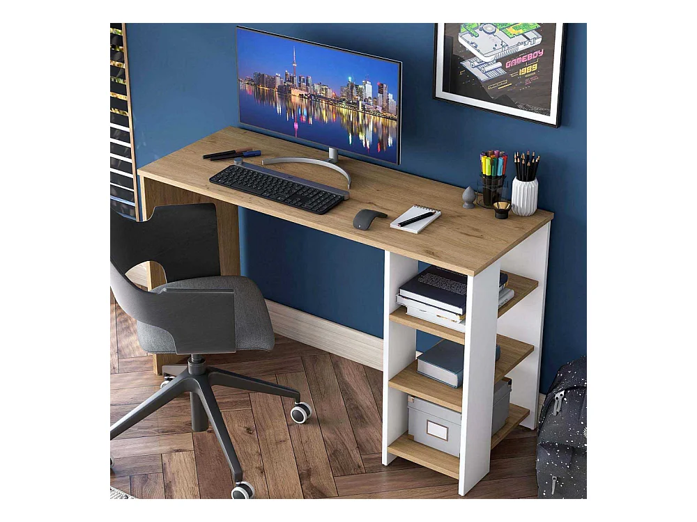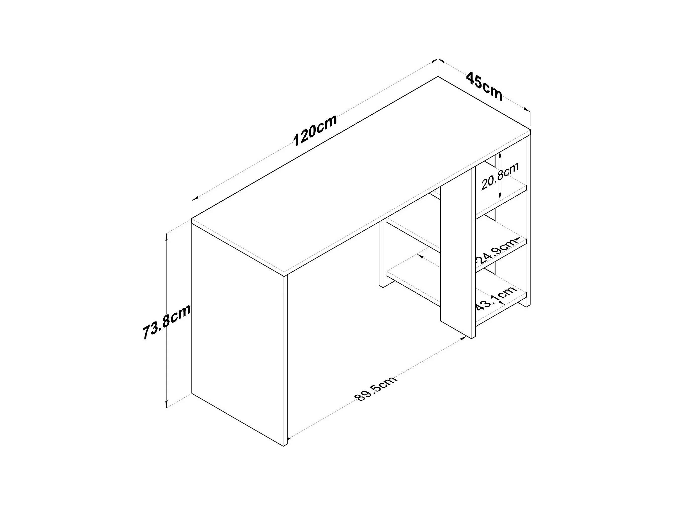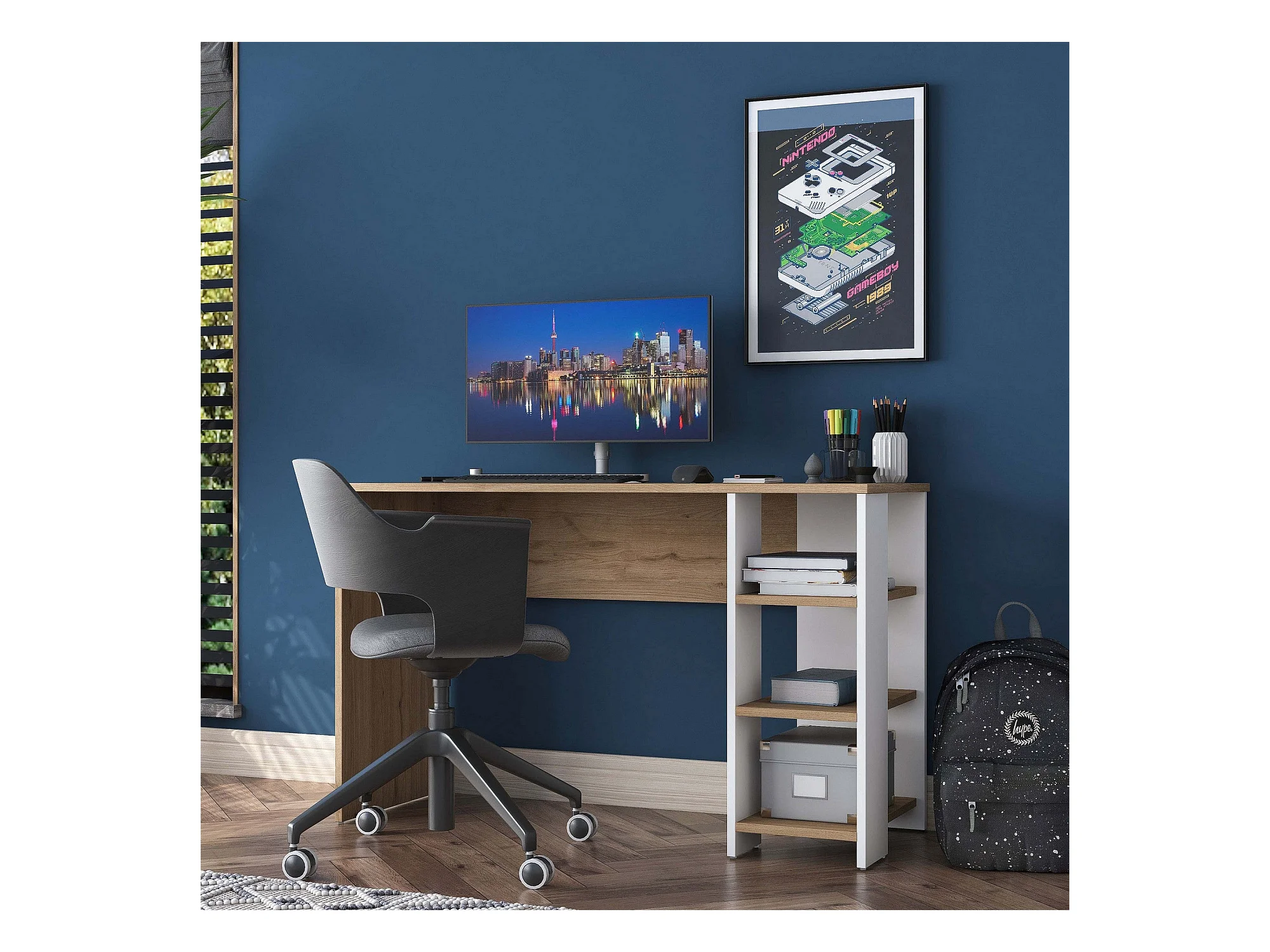 Bureau avec étagères et design X, MDF, gris + blanc (120x50x74 cm)