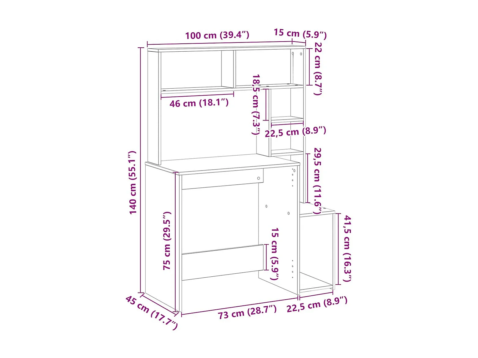 Bureau avec étagères noir 100x45x140 cm bois d'ingénierie