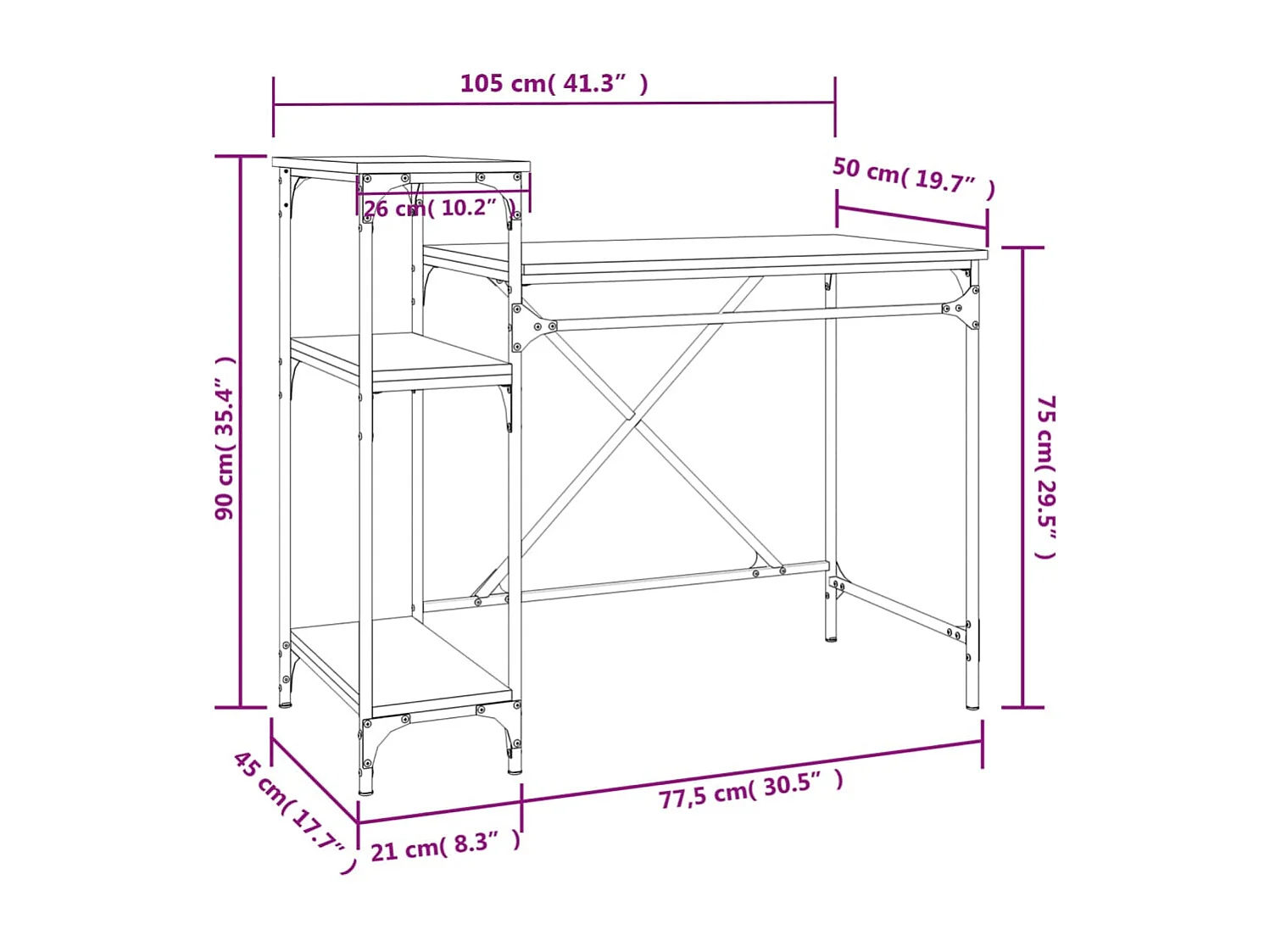 Bureau avec étagères sonoma 105x50x90 cm bois d'ingénierie/fer