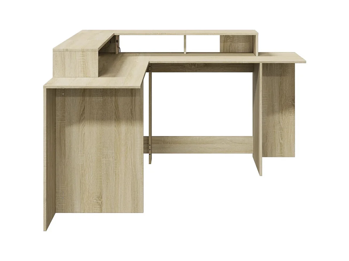 Bureau avec lumières LED chêne sonoma bois d'ingénierie