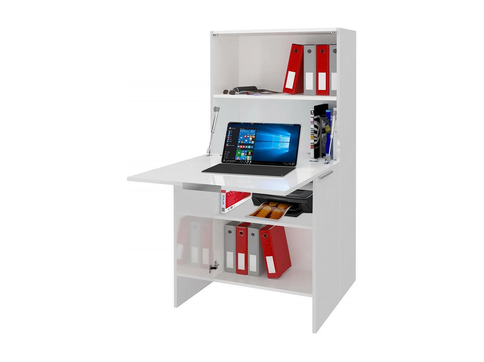 Dmora - Scrivania Atroc, cm 70x35h140, Bianco lucido