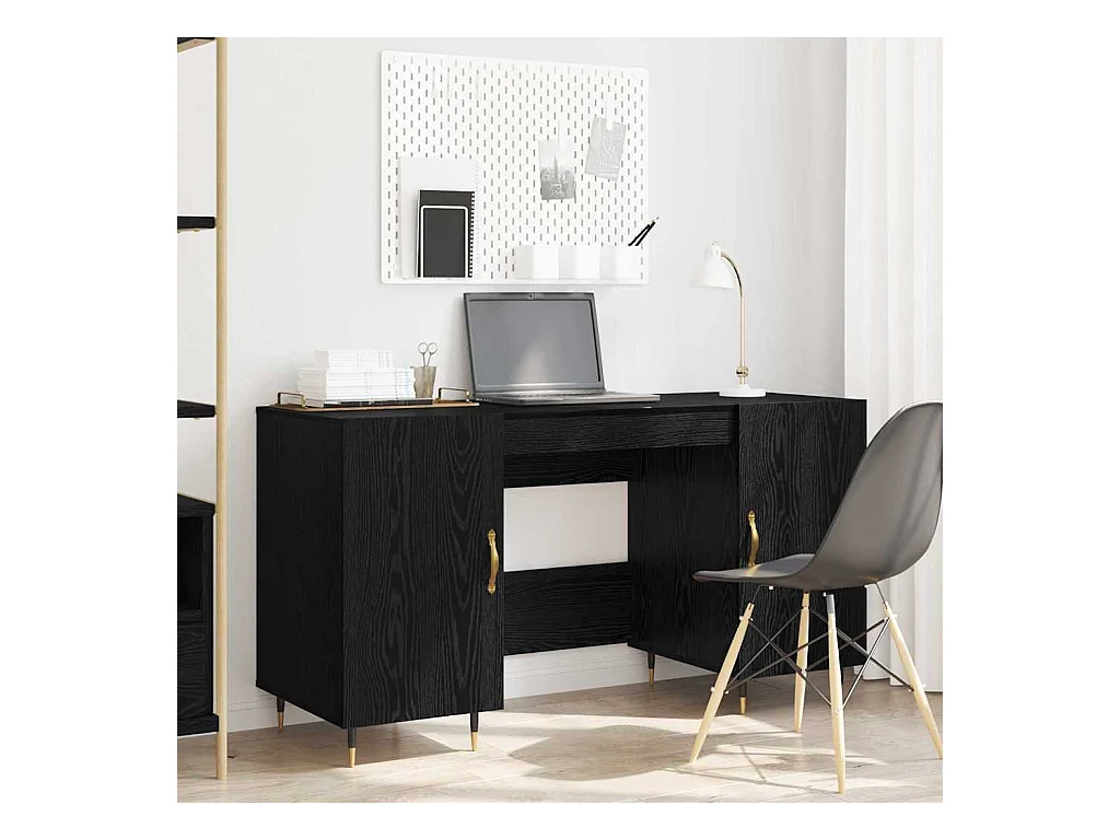 Bureau avec porte Chêne noir 140 x 50 x 76 cm Bois d'ingénierie