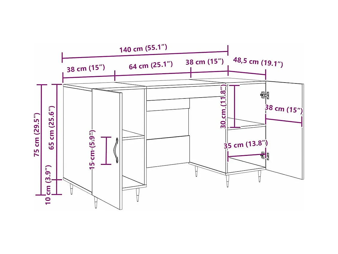 Bureau Autre Chêne noir 140 x 50 x 75 cm Bois d'ingénierie