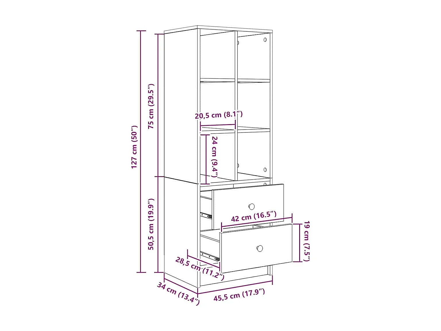 Buffet haut vieux bois 60x36x110 cm bois d'ingénierie