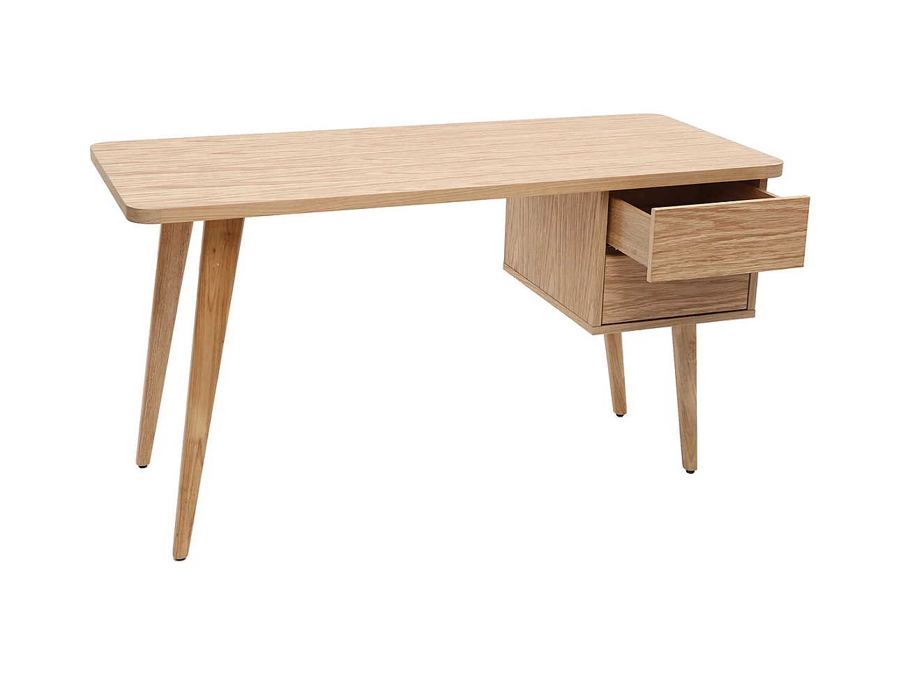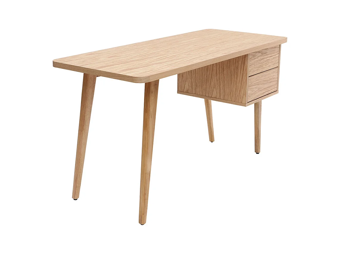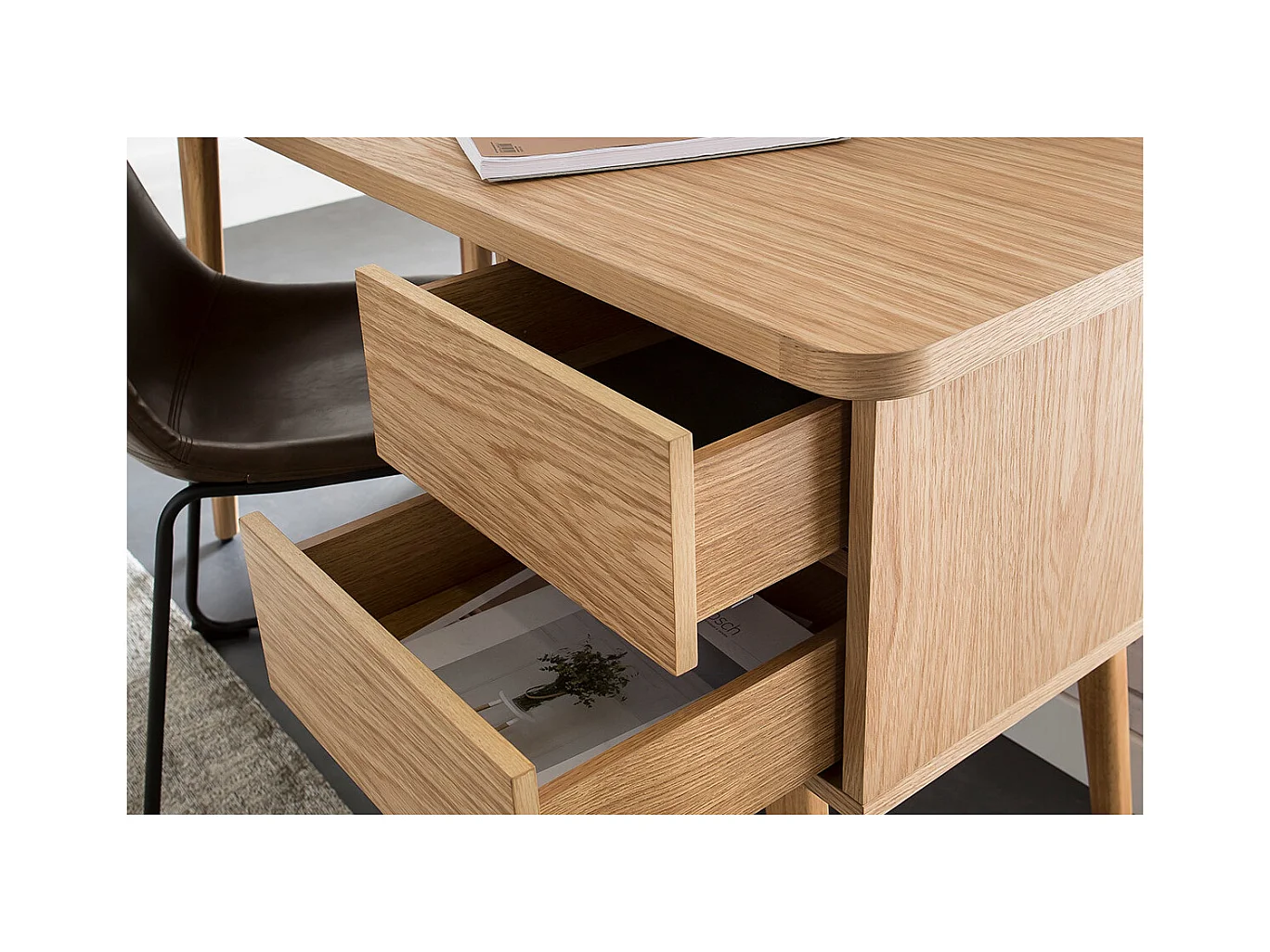 Bureau avec rangements 2 tiroirs scandinave bois clair chêne L140 cm FIFTIES
