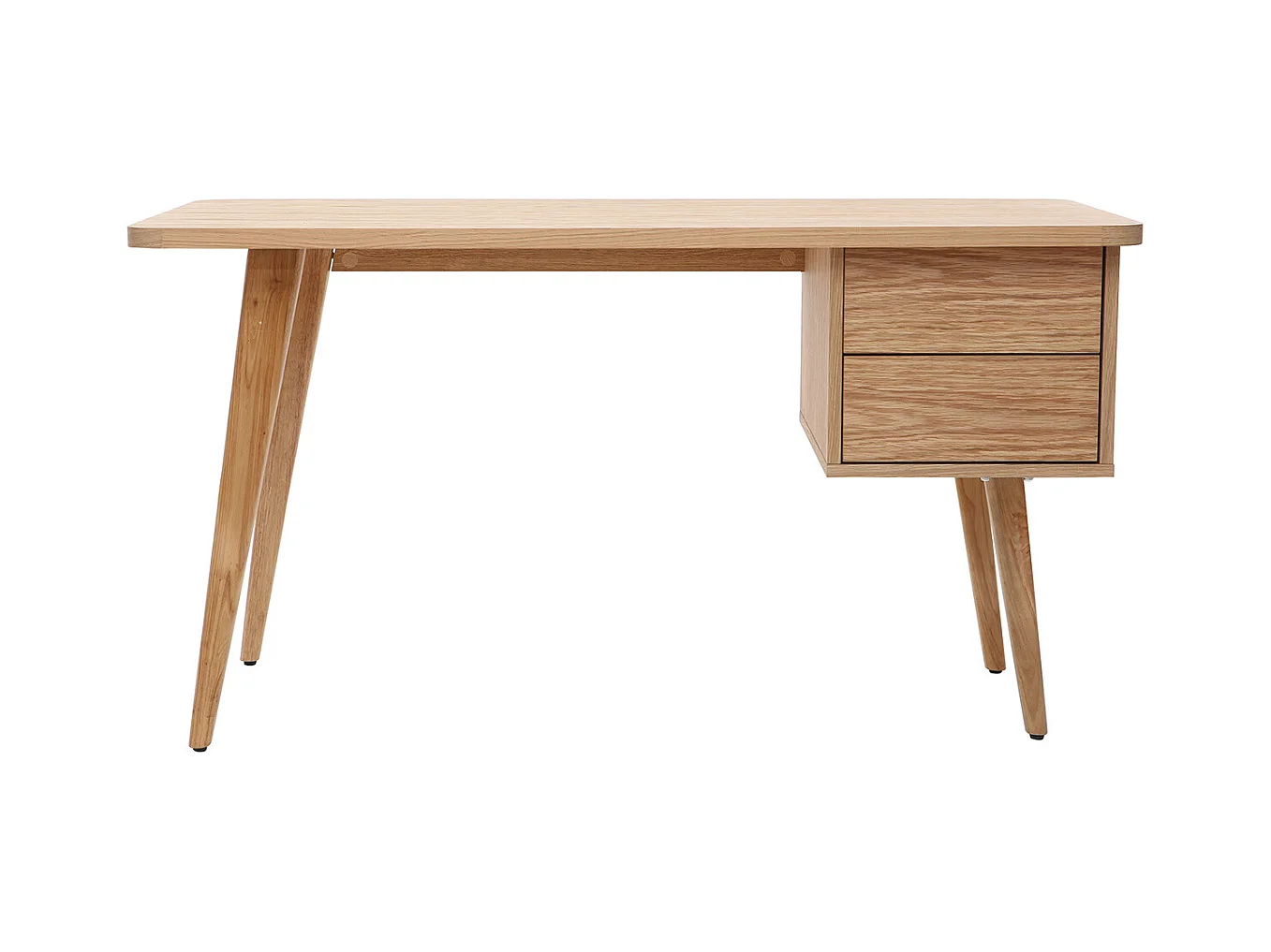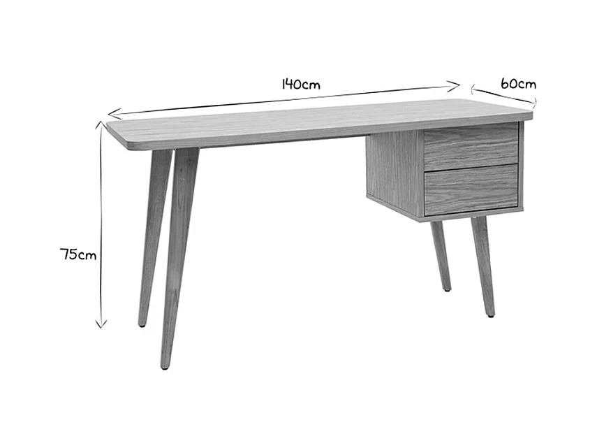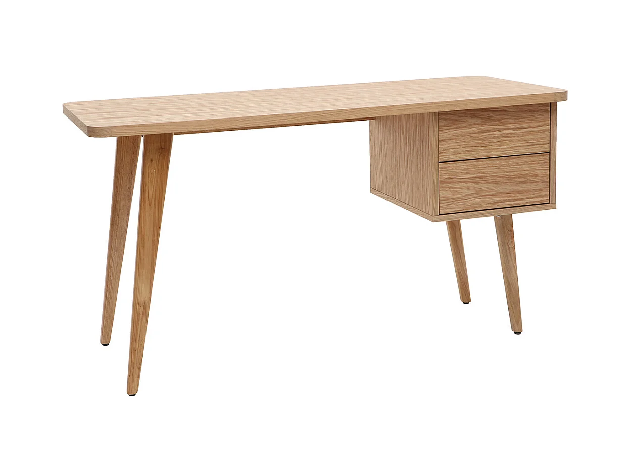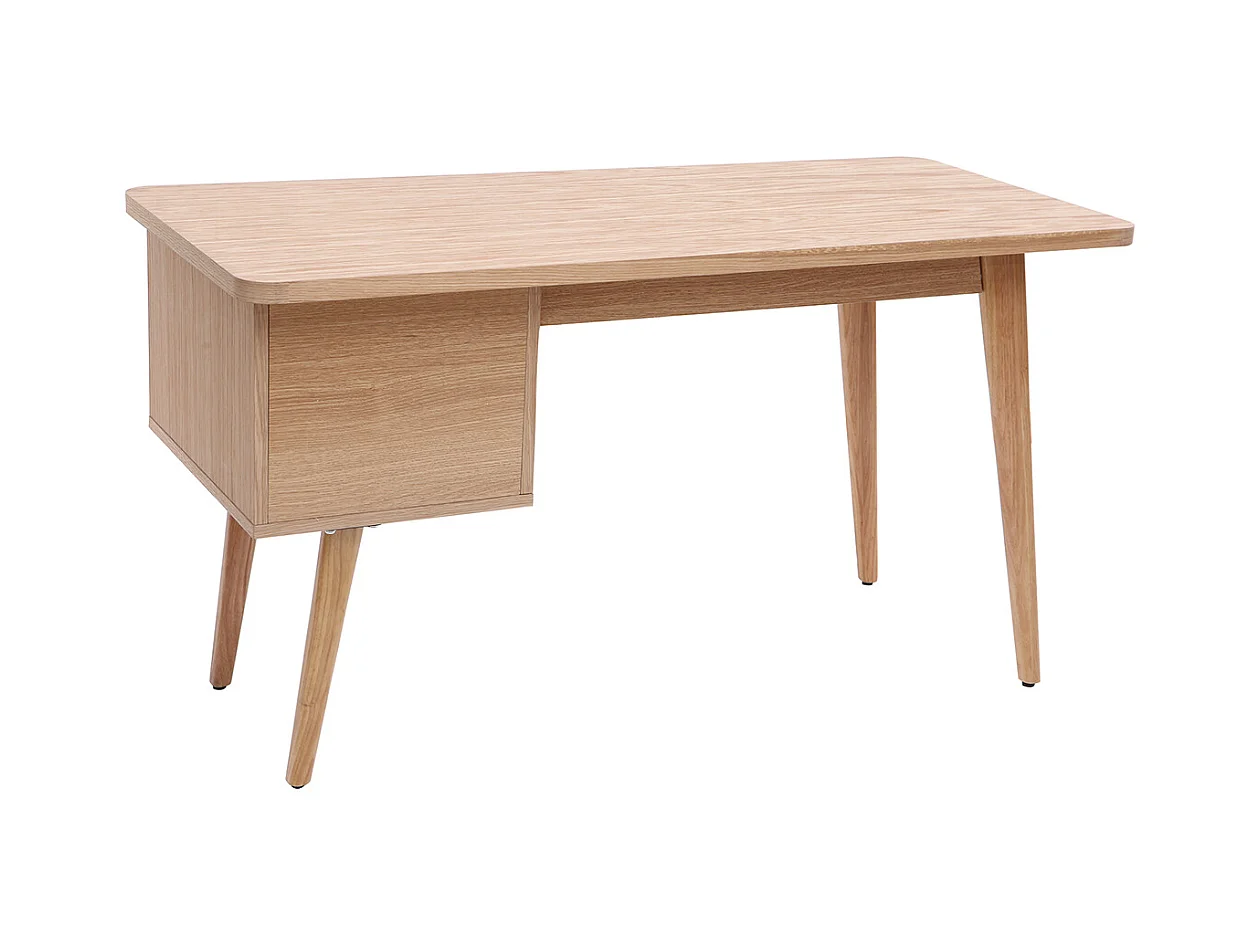 Bureau avec rangements 2 tiroirs scandinave bois clair chêne L140 cm FIFTIES