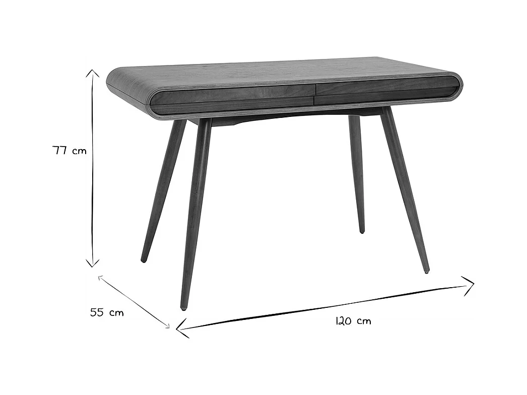 Bureau avec rangements 2 tiroirs vintage bois foncé noyer L120 cm BJORG