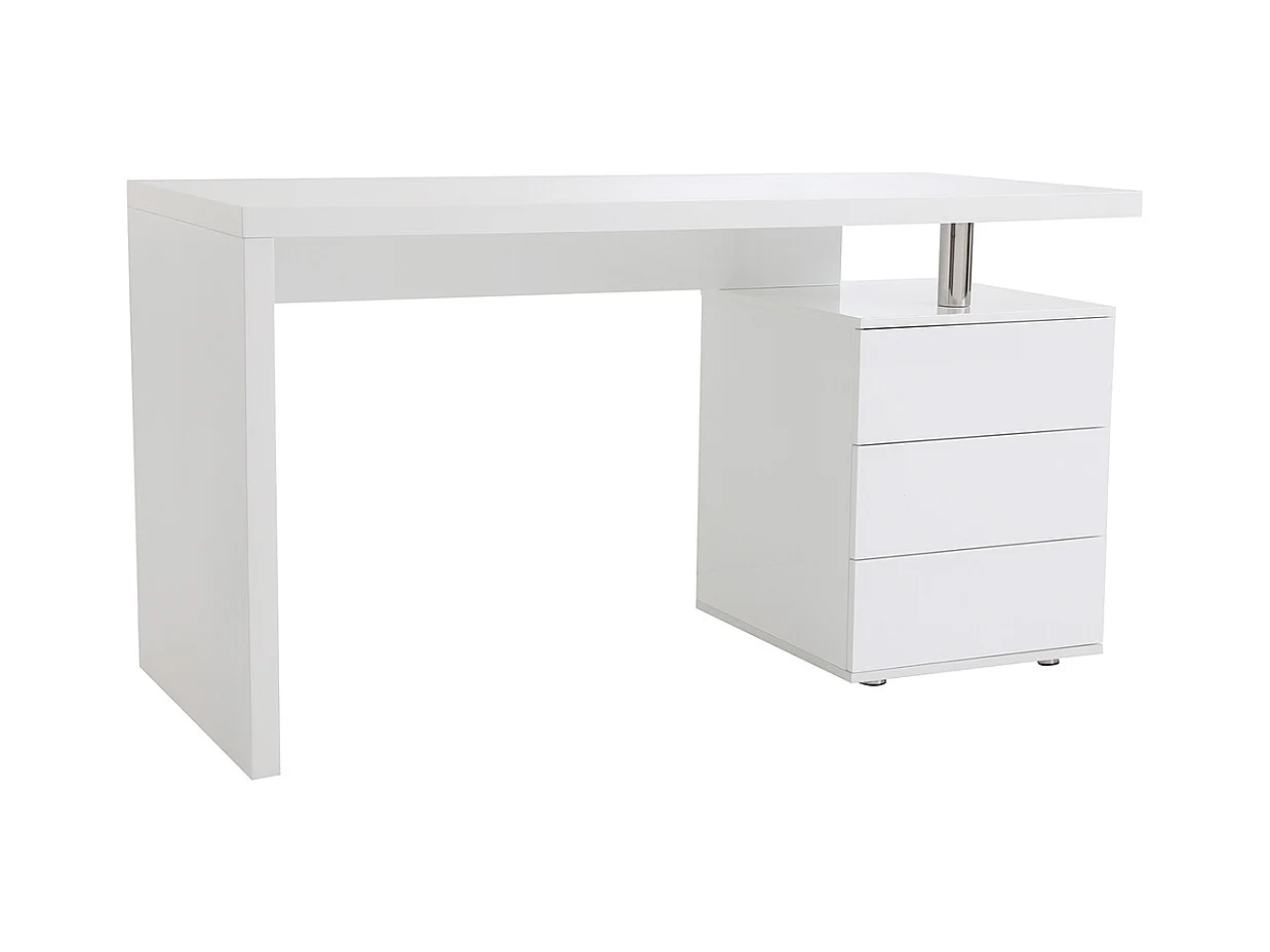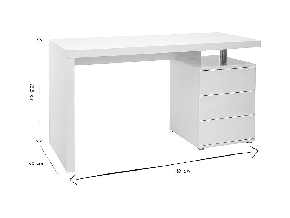 Bureau avec rangements 3 tiroirs design blanc laqué brillant L140 cm CALIX