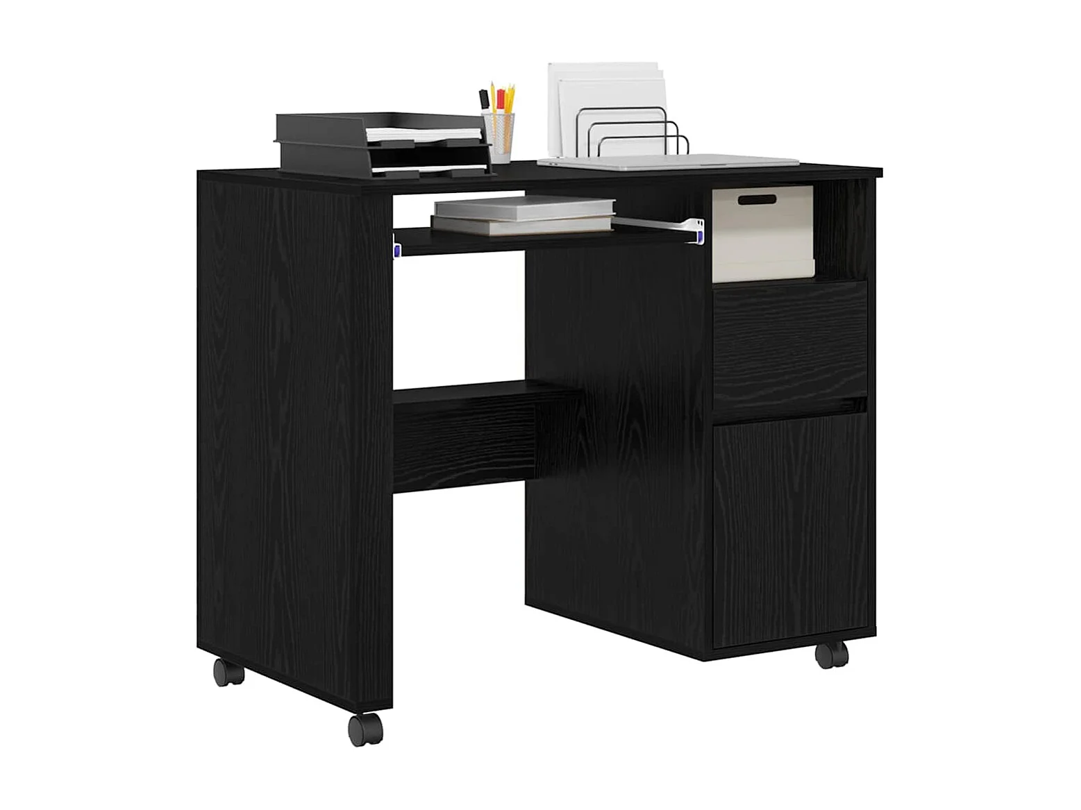 Bureau avec roulettes avec tiroir Chêne noir 91 x 50 x 77 cm