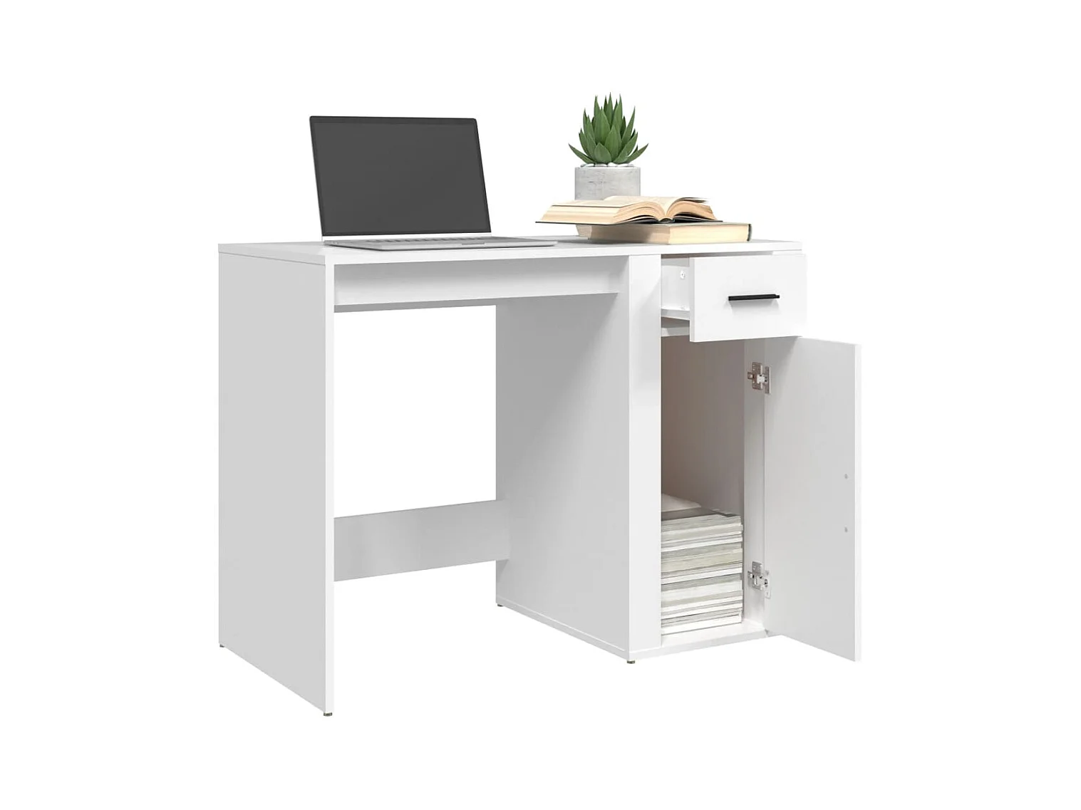 Bureau avec tiroir et armoire Blanc brillant 100x40x73 cm