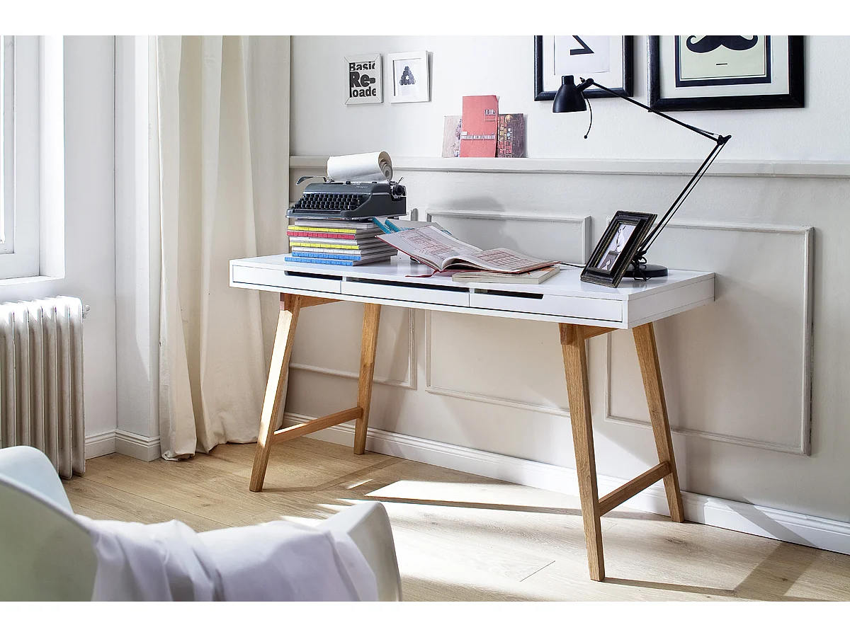 Bureau blanc mat avec piètement en bois massif - L120 x H78 x P40 cm
