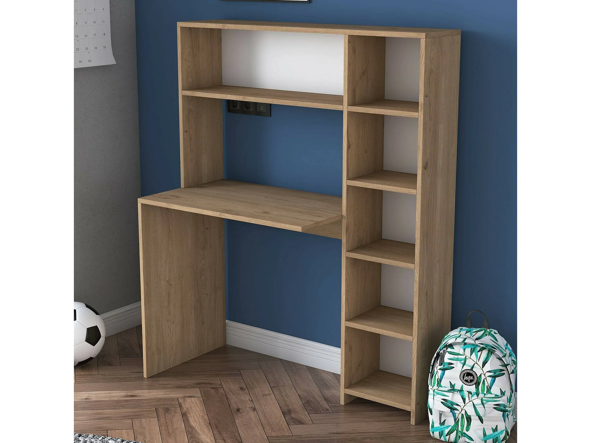 Bureau Angete, Pupitre polyvalent, Table de bureau pour PC, Plan de travail, 129x120h72 cm, Chêne et Blanc