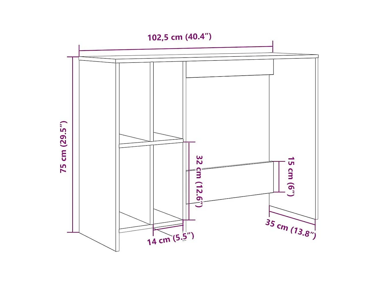 Bureau chêne artisanal 102,5x35x75 cm bois d'ingénierie