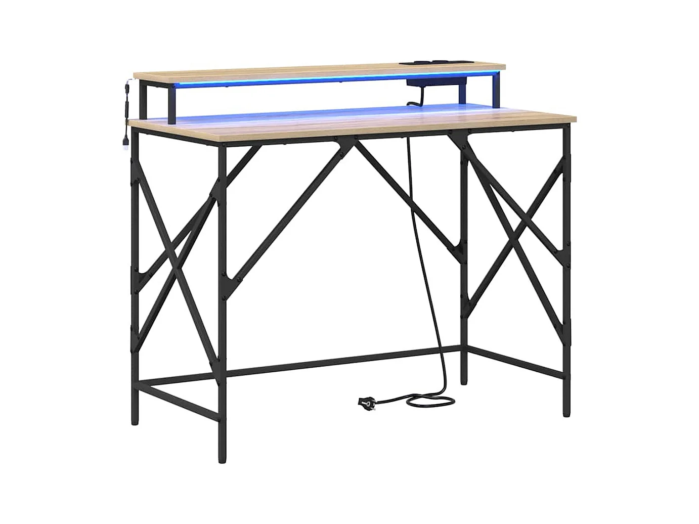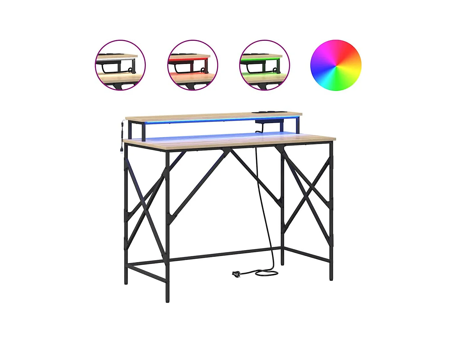 Bureau avec lumières LED chêne sonoma bois d'ingénierie