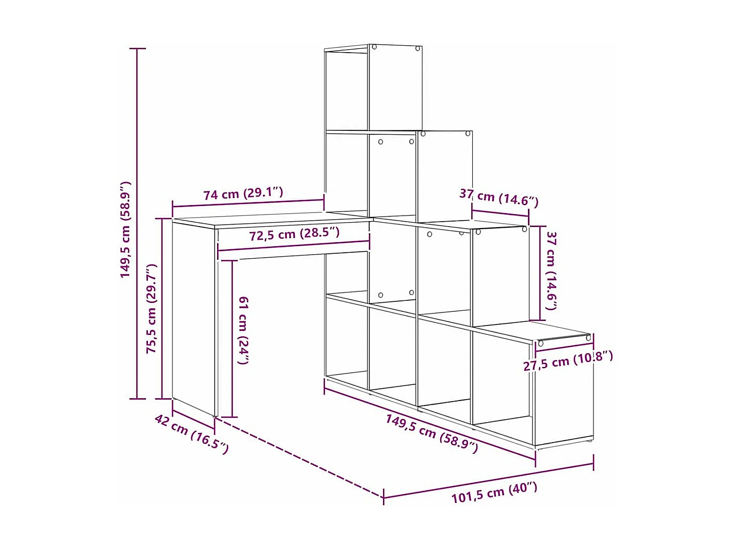 Bureau d'angle avec étagère Chêne noir 101.5 x 149.5 x 149.5 cm