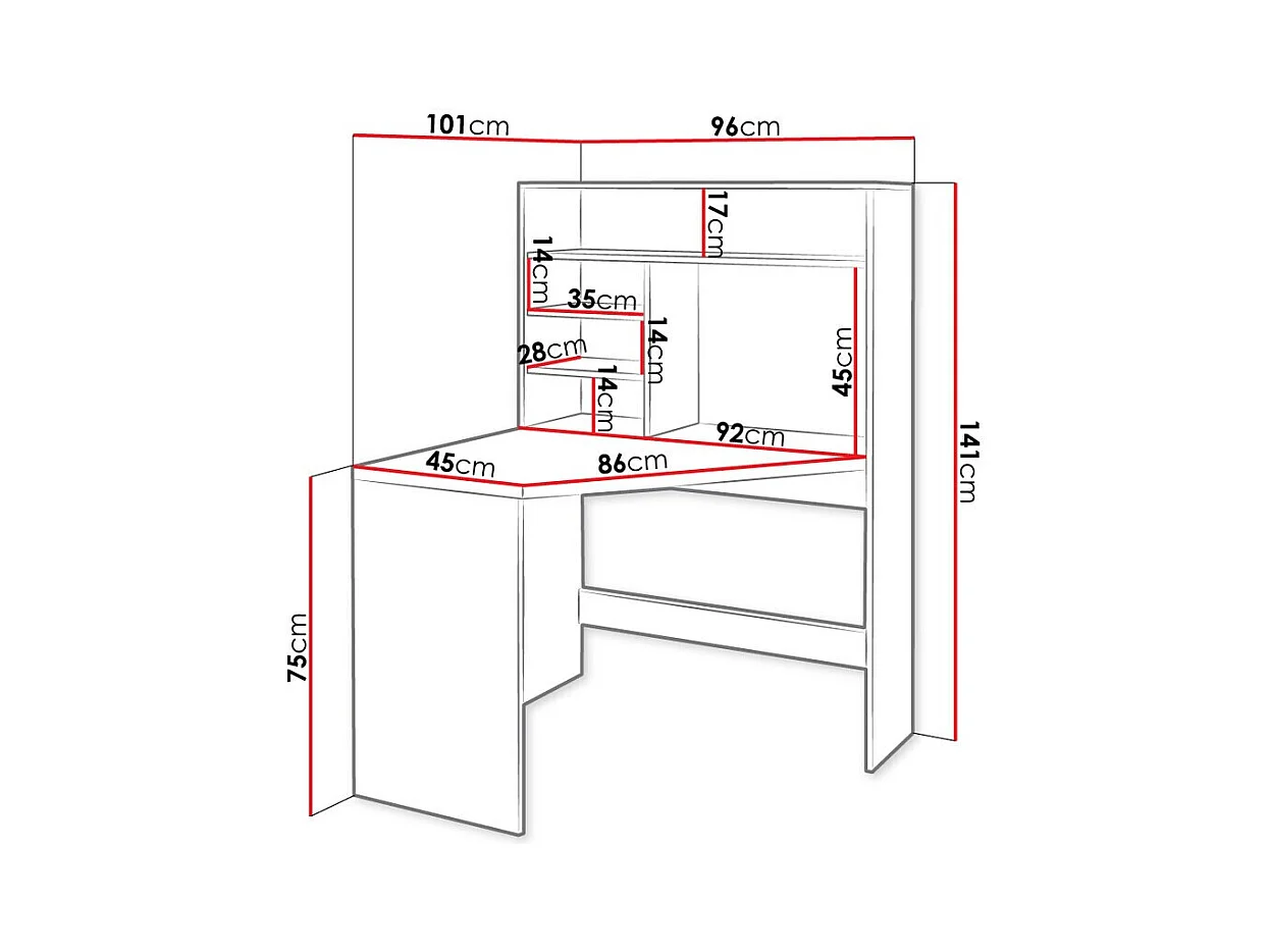 Bureau d'angle Bedford 101, Angulaire, 75x101x96cm, Blanc
