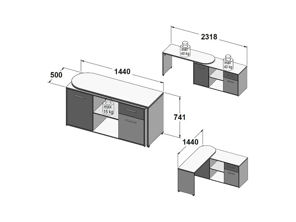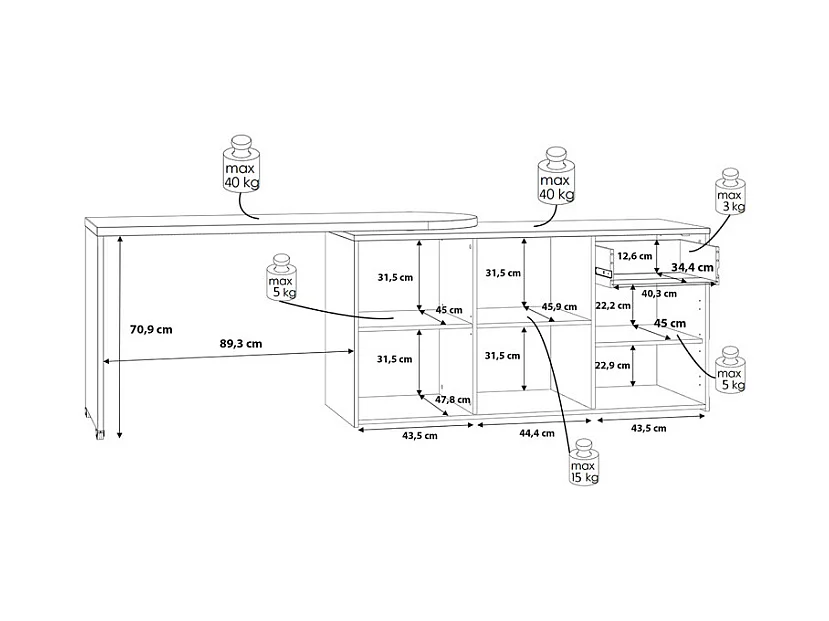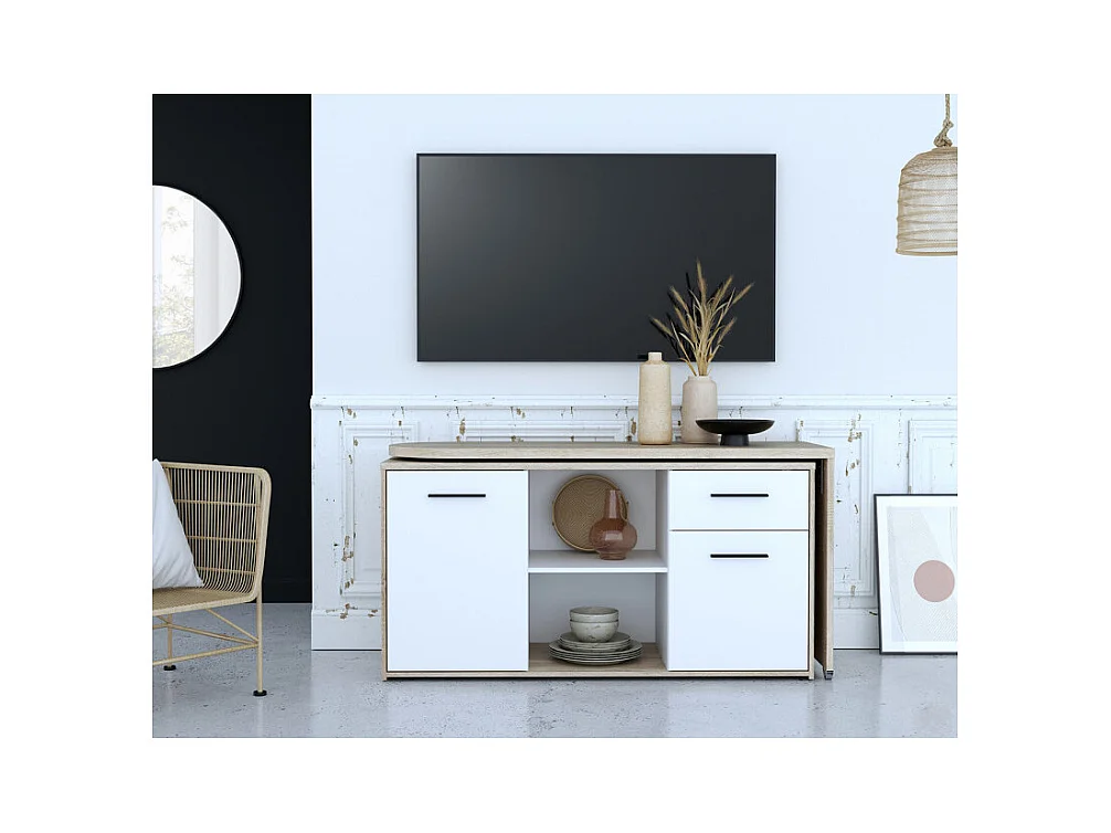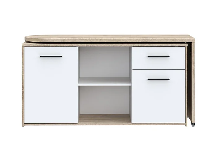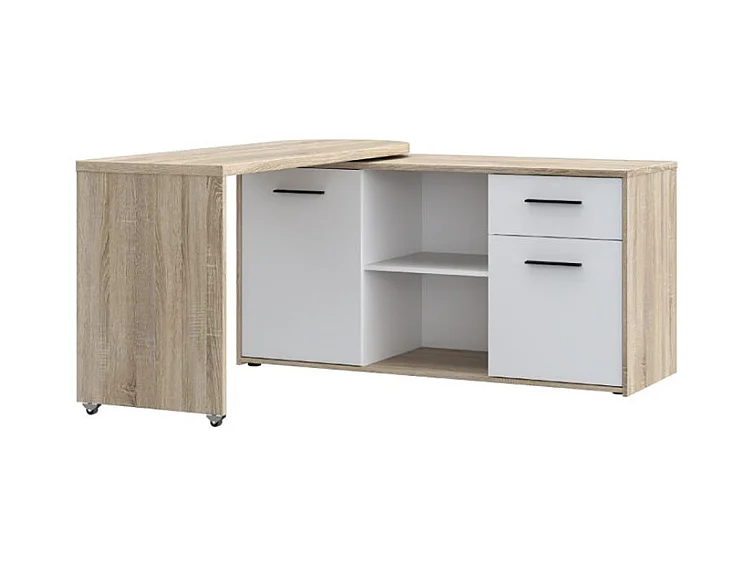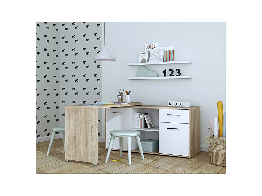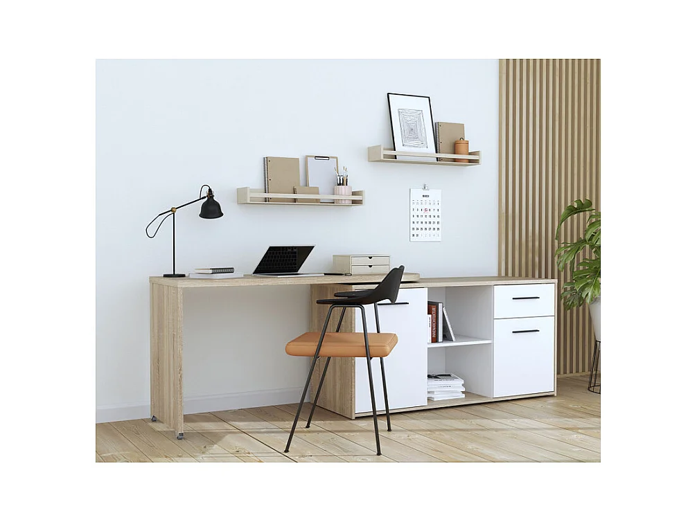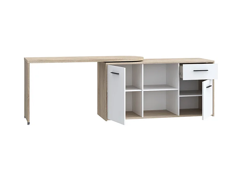 Bureau d'angle rotatif 144 cm à 232 cm décor bois et blanc - ALKIRA